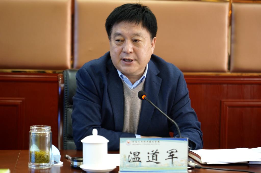 温道军就进一步深入学习宣传贯彻党的二十大精神提出四点要求,一是要提高政治站位,深刻领会精神内涵。要深刻领会新时代新征程中国共产党的使命任务、中国式现代化的中国特色和本质要求、统筹推进“五位一体”的总体布局、教育科技人才、法治建设、国家安全等方面的重大部署,牢牢把握习近平新时代中国特色社会主义思想的世界观和方法论。二是要坚持学深悟透,深化宣传引导。全校上下要把学习贯彻党的二十大精神作为当前和今后一个时期的首要政治任务,迅速掀起学习、领会、贯彻党的二十大精神的热潮。要分类分层做好学习宣传贯彻,形成领导干部带头领学、专家讲师进校促学、青年学生踊跃互学的浓厚氛围,做到学习宣传贯彻全覆盖。三是要坚持学用结合,全面落实落细。要坚持联系实际学,将学习党的二十大精神与落实学校“十四五”发展规划结合起来,与当前疫情防控和安全稳定工作结合起来,把党的二十大作出的重大决策部署付诸于行动、见之于成效,把学习成果转化为推动学校事业高质量发展的强大动力和实际举措。四是要坚持党的领导,加强党的建设。要以贯彻落实党的二十大精神为主线,坚定不移把党的全面领导落到实处,加强正风肃纪,坚定不移推动全面从严治党向纵深发展,不流于形式、不做表面文章,为办好人民满意的职业教育贡献工院力量。