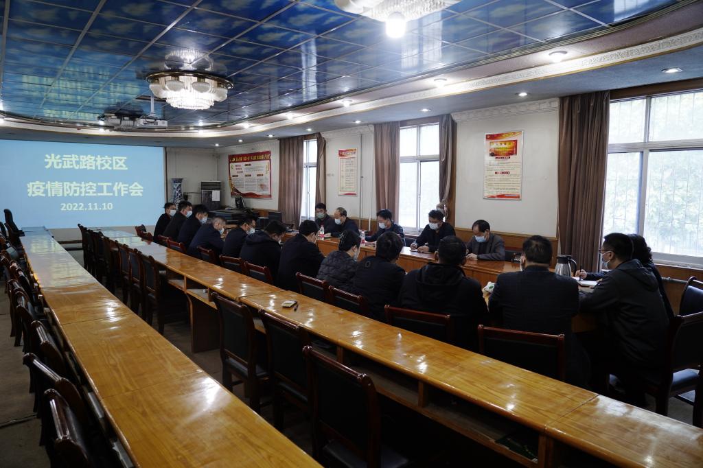 11月10日上午,学校工会主席屈保中主持召开光武路校区疫情防控工作会,党政办、宣传部、学生处、保卫处、离退休工作处、后勤服务中心、校医院、建筑工程学院、测绘环保工程学院、继续教育学院、五年制管理中心等单位工作人员参加。