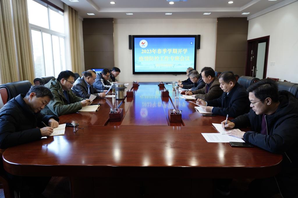 2023年1月28日下午,学校在孔明路校区第二会议室召开2023年春季学期开学疫情防控工作专班会议,安排部署迎接省教育厅2023年春季开学教育系统疫情防控工作专项督导检查工作,学校党委副书记杜建根主持召开疫情防控工作专班会议,学校疫情防控九个工作专班负责人参加会议。