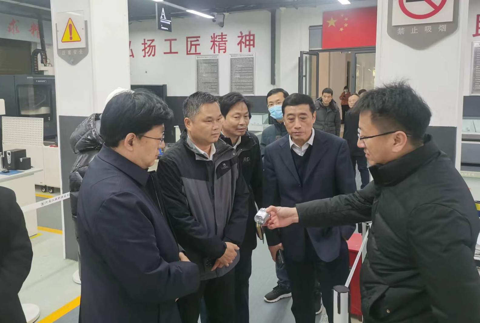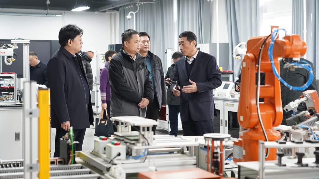 会后,在王伟的陪同下,许惠达、魏刚一行先后实地参观了自动化工程学院工业机器人实训中心,机械学院数控加工中心、精密制造中心,创新创业学院南都众创空间。