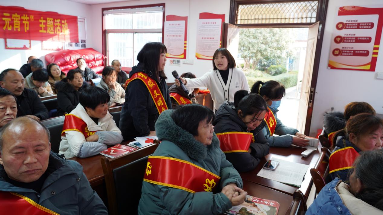 伴随着欢快喜庆的音乐旋律,下午三点整,“元宵灯谜诗词会”准时拉开帷幕,活动现场热闹非凡,广大村民踊跃参与,大家开动脑筋、相互讨论,时而冥思苦想、时而恍然大悟、时而顿足失笑,现场洋溢着温馨热闹的节日气息。