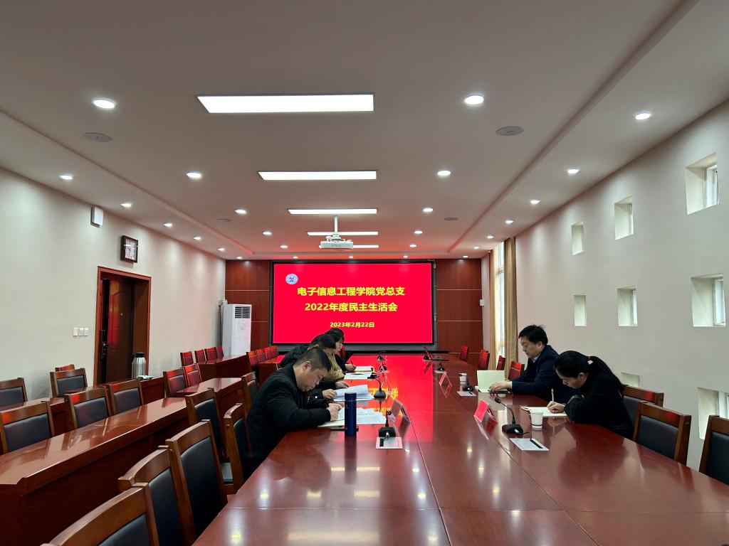 按照学校党委关于开好2022年度党员领导干部民主生活会的工作部署,2月22日上午,电子信息工程学院在三楼会议室组织召开党总支2022年度民主生活会,学校党委书记温道军参加会议并指导工作,组织部副部长袁贤陪同,电子信息工程学院党总支全体委员参加,会议由党总支书记朱昭主持。