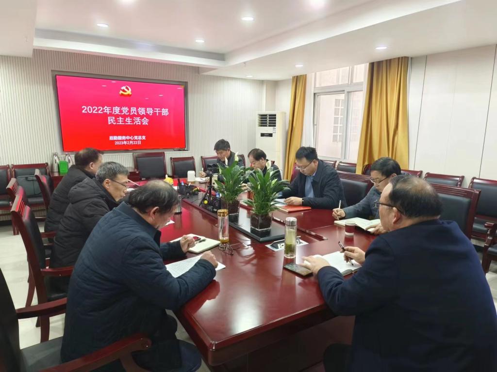 根据校党委的工作安排,后勤服务中心于2023年2月22日下午在学校留学生公寓5楼会议室召开“2022年度党员领导干部民主生活会”,校党委副书记杜建根、组织部正科级组织员唐锋出席会议,会议由后勤服务中心党总支书记龚健冲主持,后勤服务中心党总支领导班子全体成员参加。