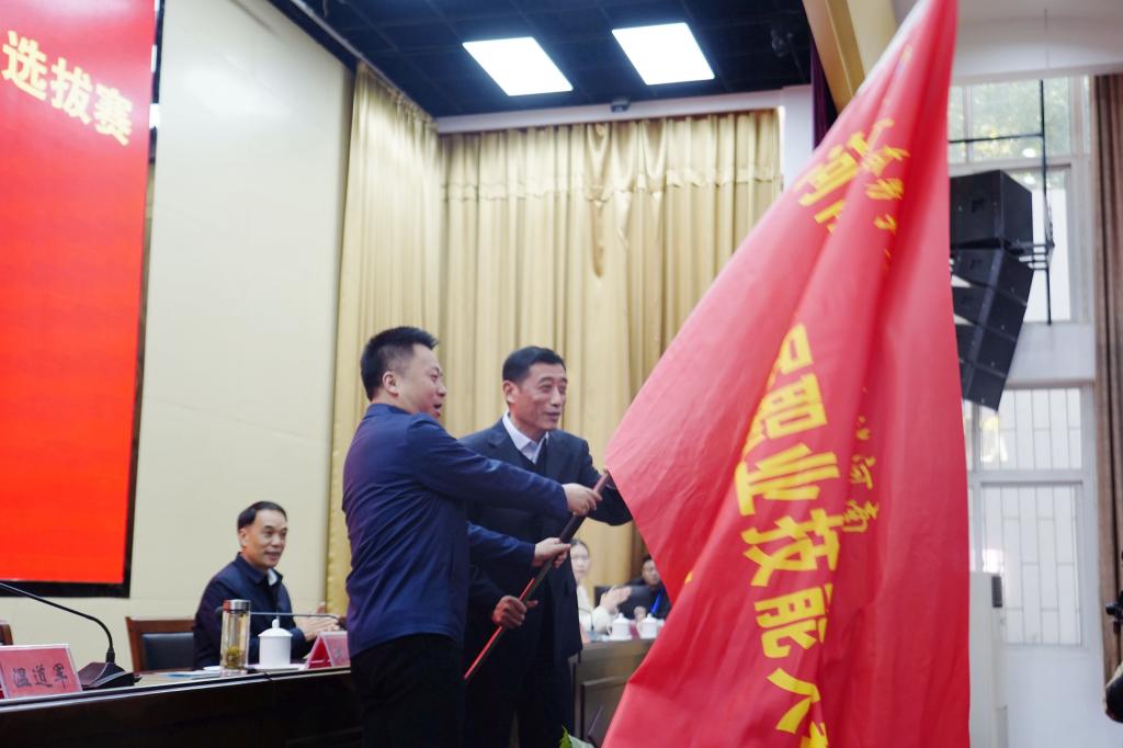 南阳市人民政府向举办院校代表河南工业职业技术学院授旗