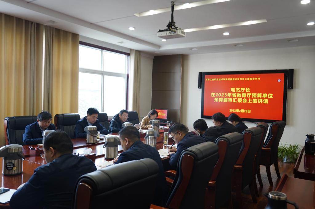 会上,全体成员集体学习了习近平总书记在中共中央政治局第二次、第三次集体学习时的重要讲话,习近平总书记在学习贯彻党的二十大精神研讨班开班式上的重要讲话,2023年全国、全省教育工作会议精神及《中共河南省委教育工委 河南省教育厅2023年工作要点》,副校长王仁伟领学了毛杰厅长在2023年省教育厅预算单位预算编审汇报会上的讲话,全体成员就学习内容进行了交流研讨。