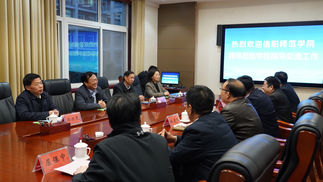 陈登报一行对学校的热情接待表示感谢,着重介绍了信阳师范学院的办学历史和目前的发展现状,对学校近年来在各方面取得的成绩表示肯定和赞赏,希望两校能够进一步增进友谊,加强沟通与合作,实现互利共赢,共同发展。(供稿/党委宣传部 图文/杨纪争 部门审核/杨俊峰 编审/杨洋)