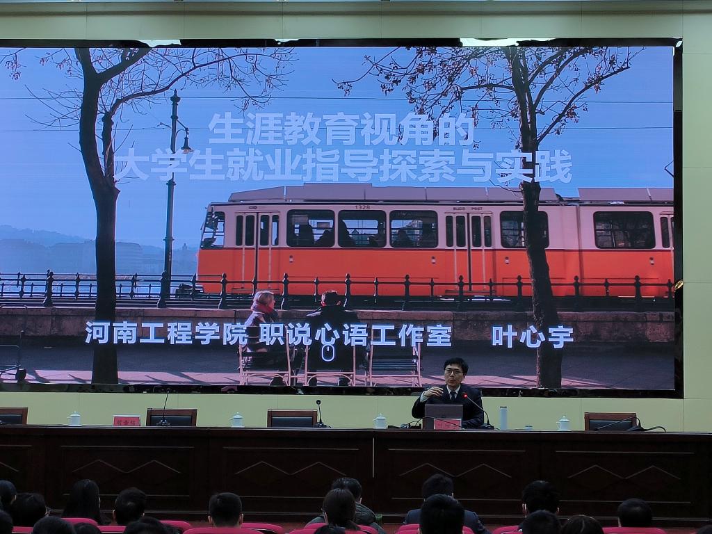 线下集中培训,于3月4日在大学术报告厅进行,由河南省大中专学生就业服务中心综合服务部主任王冰、河南工程学院职说心语工作室负责人叶心宇,为毕业班班主任和全体辅导员进行就业创业能力提升培训。两位专家从大学生就业创业心理分析与指导服务、就业创业形势和政策、就业统计与就业手续、如何做好毕业生就业创业工作、就业创业指导课程教学能力提升等5个方面进行了详细讲解,专家现身说法分享自我成长历程、典型工作案例、一线工作经验和行之有效的工作方式方法,老师们收获满满,对今后工作充满信心。