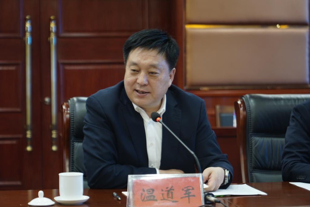 温道军代表学校对军民融合办的各位领导表示热烈的欢迎和感谢,汇报了学校2022年在党的建设、“三教”改革、人才培养、科学研究、社会服务等方面取得的成绩。温道军就下一步双方深入合作发展提出三点建议,一是集聚资源,优势推进三方共建学校;二是深化产教融合,发挥军工职教集团纽带作用;三是立足行业特色,支持学校持续融入。温道军表示,学校在高质量发展的关键冲刺期需要省委军民融合办的指导和帮助,希望学校能继续融入军工大家庭,进一步凝聚办学特色,发挥军工办学传统和办学优势,共同推动学校高质量发展迈上新台阶。