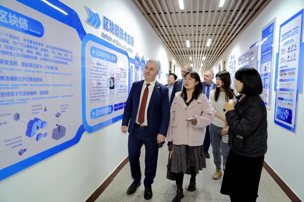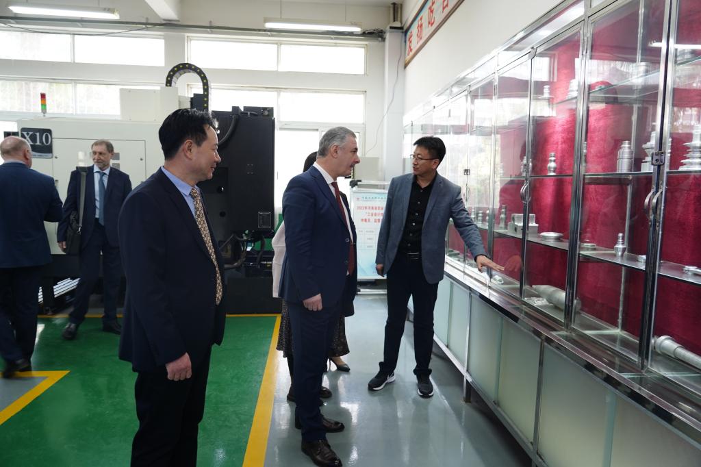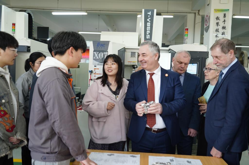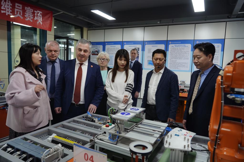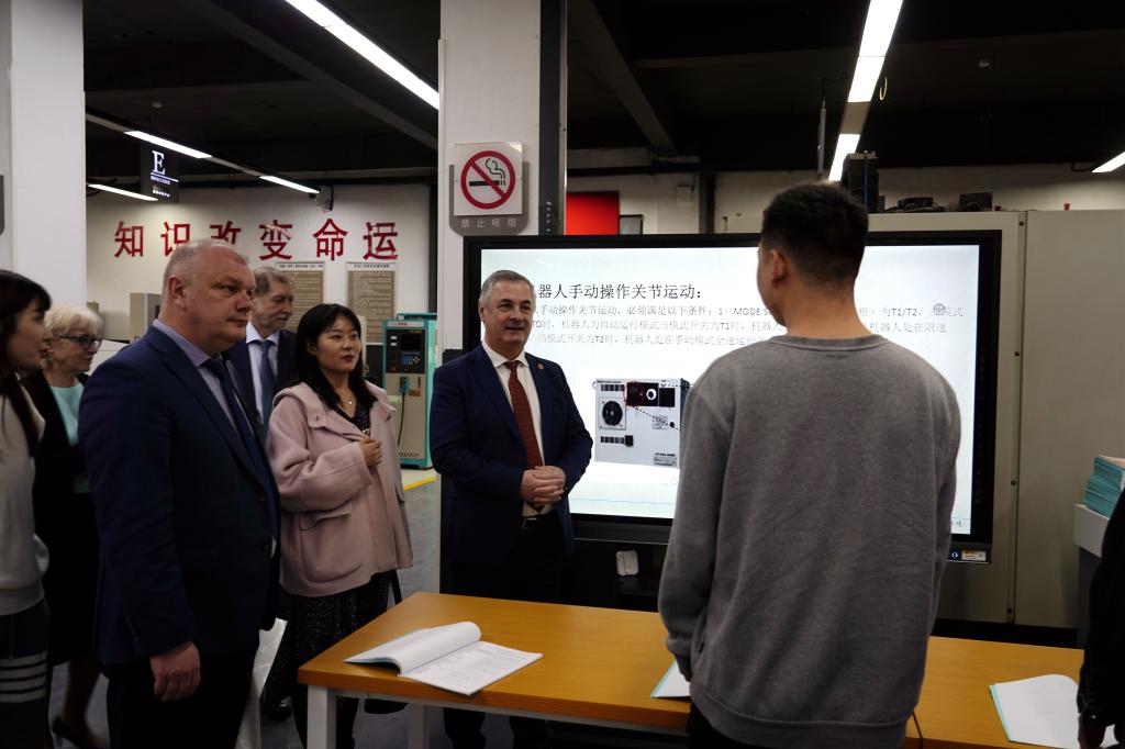 见面会后,米哈伊洛维奇一行参观了学校京东校园实训中心、数控加工中心、五轴加工中心、人工智能体验中心、工业机器人应用工程技术研究中心。