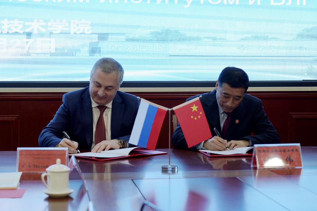 会上,双方校长签订“俄罗斯张衡学院”合作协议并交换礼品。