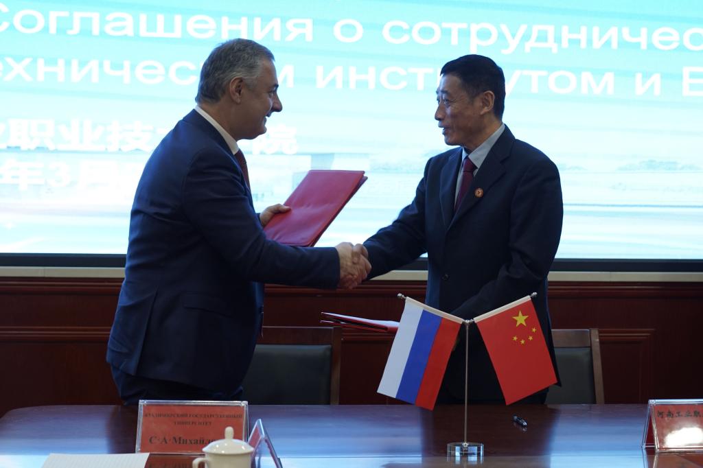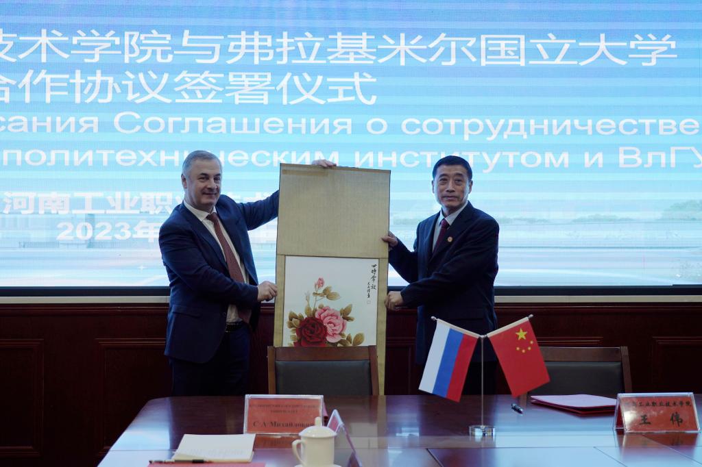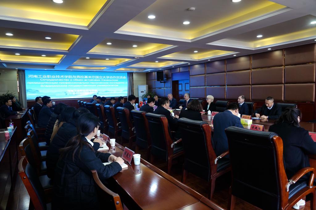 米哈伊洛维奇校长对弗拉基米尔国立大学的基本情况进行了介绍,对我校输送的留学生在校学习和成绩情况表示了高度肯定和赞扬。米哈伊洛维奇表示,很高兴能与河南工业职业技术学院进行交流与合作,俄中合作办学项目是弗拉基米尔国立大学国际活动发展的优先领域,此次与我校签署合作协议必将更加有助于双方进一步合作交流,并诚挚的邀请我校到弗拉基米尔国立大学进行访问交流。