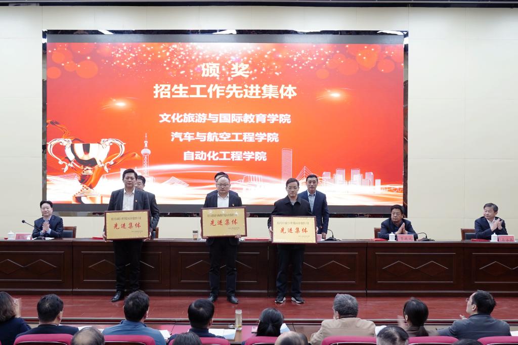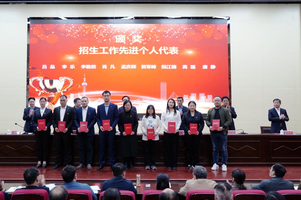 会上,党委副书记、工会主席王仁伟宣读《关于表彰2022年招生工作先进集体和个人的决定》和《关于表彰2022年就业创业工作先进集体和个人的决定》,并向受表彰的先进集体和先进个人表示祝贺,校领导为受表彰的先进集体和先进个人代表颁发了奖牌和荣誉证书。