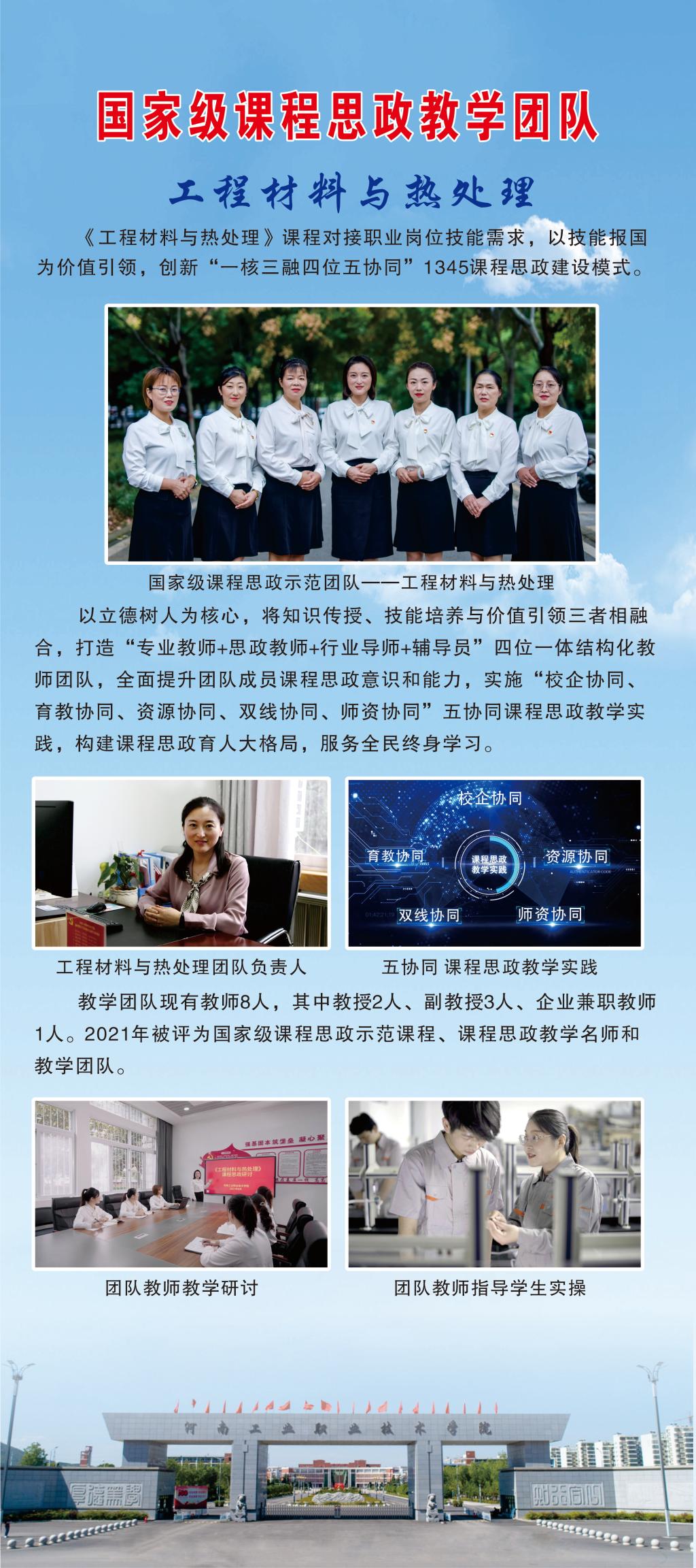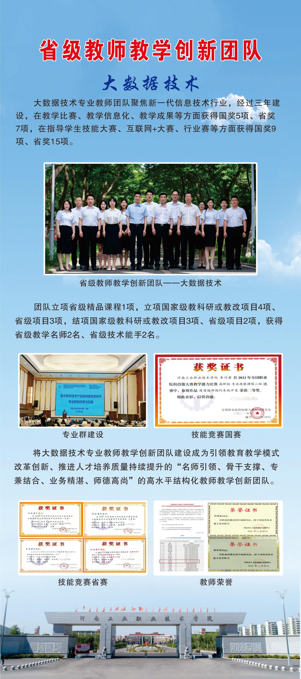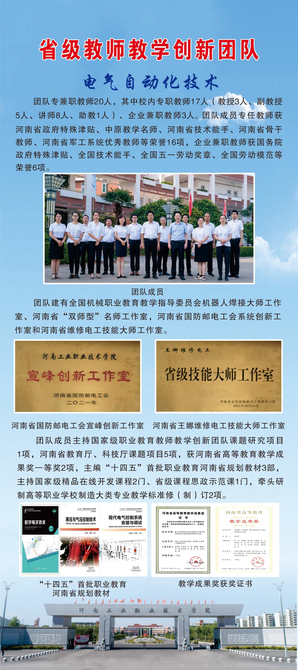 编者按:教师团队建设是推进职业教育“双师型”教师队伍高质量发展的有力抓手和重要举措,近年来,学校全面构建“国家级、省级、校级”三级教师团队建设格局,探索实践“夯实三大基础、发挥三大作用、构建三大体系,凝练一种文化”的“3331”教师团队建设路径,提炼形成“双线并行、五位一体”的教师教学创新团队建设经验,培育了一批示范引领、协同创新的教师团队。近日,党委宣传部、党委教师工作部筹备制作“教师团队风采展”,生动展示学校国家级、省级教师团队风采,客观记录在“双高计划”建设的引领下,教师团队建设的创新举措和显著成效。(供稿/党委宣传部 党委教师工作部 图文汇编/刘天恒 冯金冉 单位审核/王磊 杨爽 编审/杨洋)