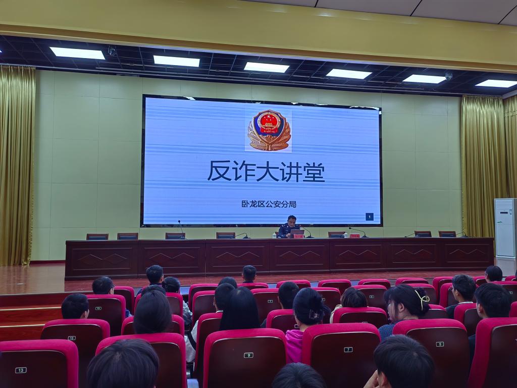 为进一步提高我校学生对电信网络诈骗犯罪的识别和防范能力、普及预防诈骗知识,营造平安、稳定、和谐的校园环境。4月11日下午,学生处、保卫处邀请南阳市卧龙区公安分局民警到校,在大学术报告厅举办学生反诈骗安全教育讲座。卧龙区公安分局刑事犯罪侦查大队教导员柏建勋、反诈中队中队长马耀和我校各学院辅导员、学生代表等400余人参加了讲座。活动由学生处副处长李秋实主持。