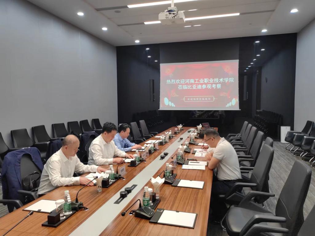 参观后,双方召开了座谈会。在座谈会上,双方共同观看了学校宣传片,刘俊鹏介绍了比亚迪集团的发展历程及比亚迪集团在校企合作方面的具体思路和详细做法。双方就组建比亚迪产业学院事宜进行了深入探讨,对人才培养方案、师资、教材、实习就业等问题做了详细交流。