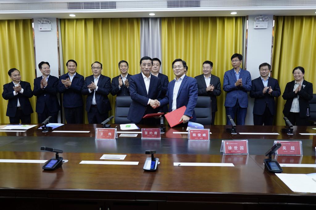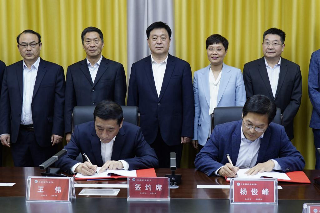 王伟与杨俊峰共同签署了《河南工业职业技术学院与河南省经济管理学校关于开展中高职联合培养人才试点专业的合作办学协议》。