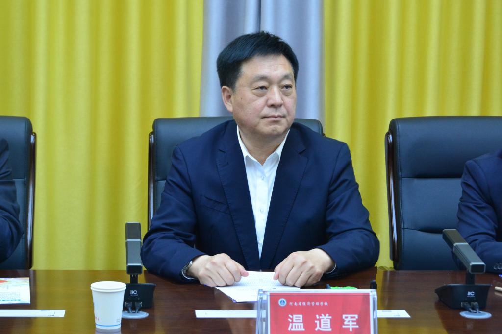 温道军在致辞中,代表学校向河南省经济管理学校的热情接待表示感谢,向河南省经济管理学校改革发展取得的突出成绩表示祝贺。他指出,两所学校是一衣带水的好邻居、守望相助的好朋友、亲密无间的好伙伴,在产教融合、人才培养、招生就业、创新创业等方面,有深入交流与合作,结出了累累硕果。开展中高职联合培养人才,是省教育厅从服务现代化河南建设、构建现代职教体系、打造职教创新发展高地的大局出发作出的战略性制度安排,对于巩固职业教育类型定位、推进职业教育纵向贯通、统筹推进职普融通具有十分重要的现实意义和价值导向作用。下一步,学校将认真履行协议职责,做好人才培养方案制定、课程管理等教育教学工作,及时沟通交流、协商解决好教育教学和人才培养过程中的问题障碍,共同探索更加科学的育人方式、办学模式、管理体制、保障机制,确保合作高效、务实推进,努力为学生提供更多成长成才机会,共同为我省产业转型升级提供更加坚实的高素质技术技能人才支撑,为建设现代化河南、高质量推进南阳省域副中心城市建设作出新的更大贡献!