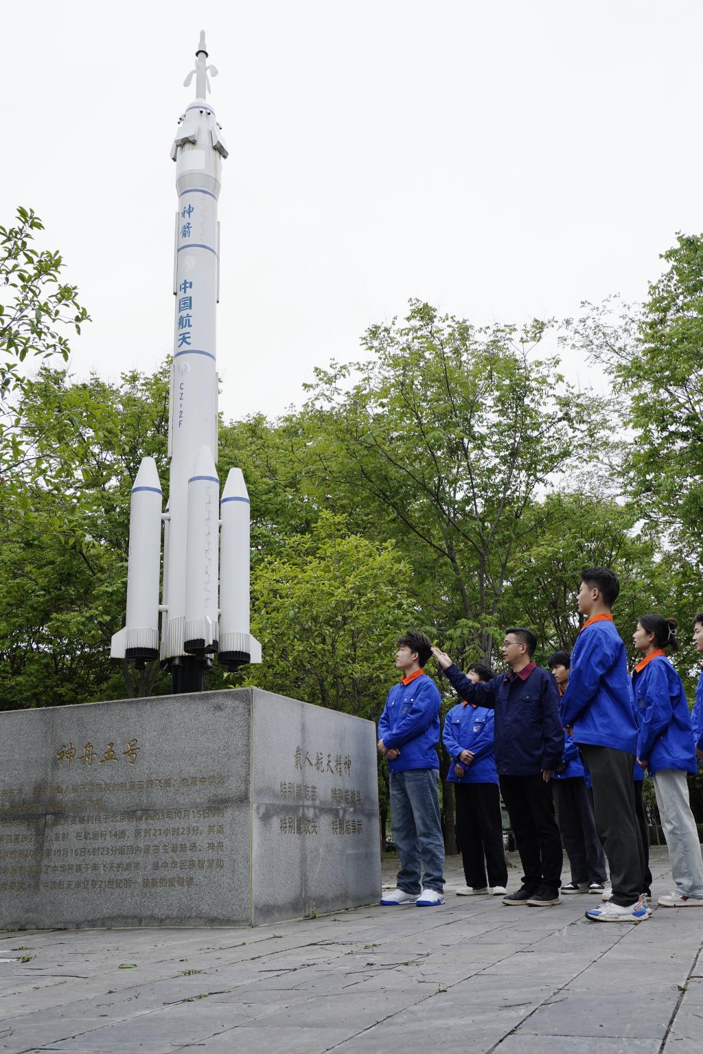 在军工文化广场,《航空航天概论》课程教师陈贞来,向通用航空器专业同学们介绍了长征二号F运载火箭系统和北斗卫星导航定位系统,激励同学们努力学习更多专业知识,增强建设中国式现代化的本领和技能。