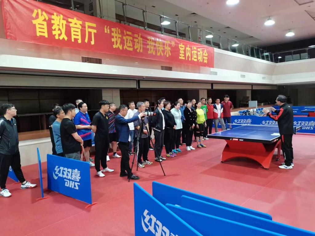 近日,省教育厅在省人民政府综合北楼E区4楼乒乓球活动中心举行乒乓球项目选手选拔赛。各委管高职、中职学校推荐的高水平乒乓球运动员齐聚一堂,进行巅峰对决。校工会组织学校艺术教育中心张国廷、体育教学部李鹏、工会金鑫3名教师运动员参加了本次选拔赛。