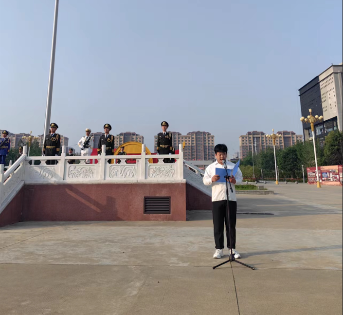 国旗招展士气振,朝霞初绽破云生。“向国旗敬礼!”随着国旗仪仗队一声铿锵有力的口令,全体师生面对国旗肃立,行注目礼并怀着崇高的敬意和满腔的热情高唱国歌,庄严的五星红旗伴着嘹亮的国歌冉冉升起!