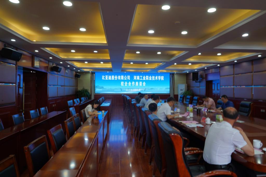 座谈会上,屈保中代表学校对比亚迪集团一行的到来表示热烈欢迎,他首先就集团化办学、校企(地)合作、产业学院建设等方面详细介绍了学校产教融合、校企合作相关情况,并对比亚迪集团目前的发展态势及产研实力、社会担当给予了高度评价。他表示学校将切实发挥平台、专业、人才、科研等综合优势,不断服务地方经济和社会发展,希望双方通过深层次、全方位、高质量的交流合作,加快推进技术人才培育、专业课程建设、科学技术研发、平台基地建设等进程,深入落实产教融合协同育人机制,互通优势资源,实现资源整合、发挥合力,共同为助推地方经济和社会发展做出更大贡献。