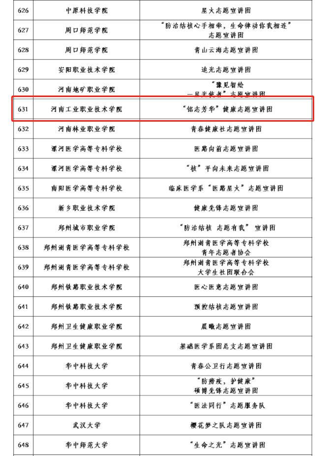 校团委积极响应,通过公众号发布招募通知,机械工程学院“铭志芳华”团队迅速组织师生精心准备申报材料,如期完成申报工作。主办单位对所有材料进行了认真审阅,最终,“铭志芳华”井冈山精神宣讲团从全国650所高校的1615支团队中脱颖而出,成功入选全国大学生井冈山精神志愿宣讲团,“铭志芳华”健康志愿宣讲团从全国780所高校的1797支团队中脱颖而出,成功入选全国大学生“防治结核 志愿有我”志愿宣讲团。
