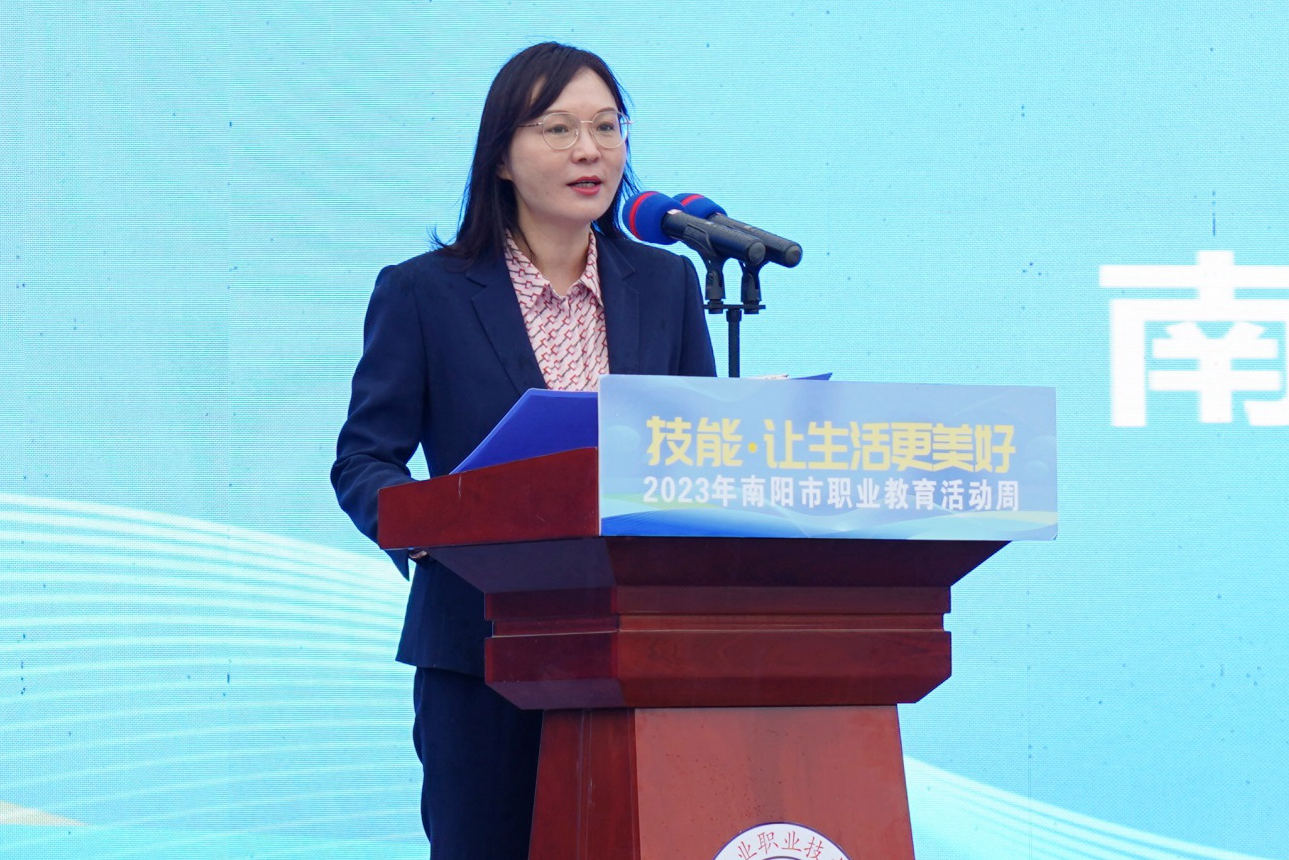 5月21日,2023年南阳市职业教育活动周启动仪式在我校成功举办。南阳市政府副市长阿颖,南阳市政协副主席、市教育局党组书记、局长杨文普,学校党委书记温道军,校长王伟出席启动仪式。市直部门和市职教园区有关负责同志、市属及驻市中高职院校负责同志、各县区教体局主管局长、中职学校校长,企业代表、中小学代表以及全市各职业院校师生代表等500余人参加启动仪式。启动仪式由市政府副秘书长李菡主持。