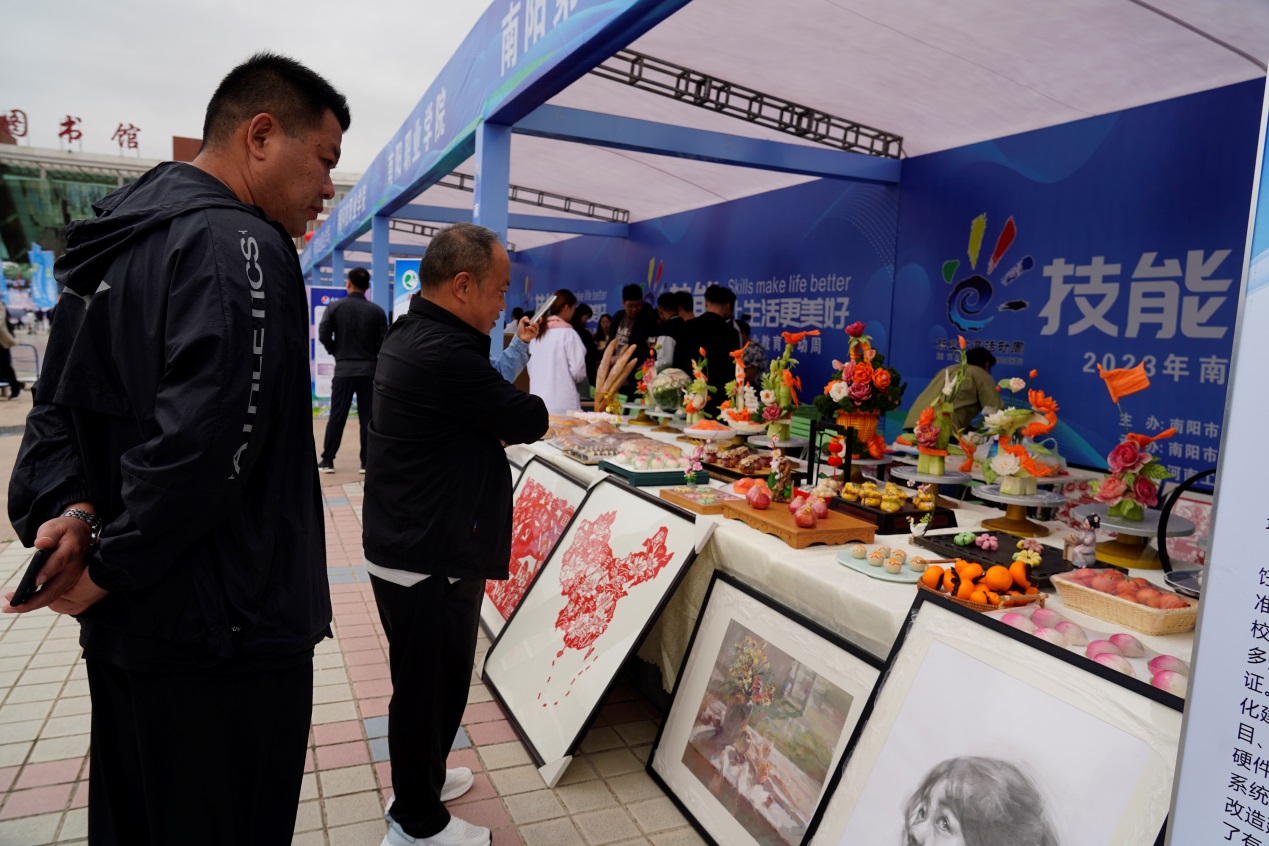 启动仪式结束后,与会领导、嘉宾一同参观了我市职业教育成果展示。据悉,启动仪式现场,来自全市各高职院校,各县区教体局代表和中等职业学校等19个单位参展职业教育成果展和学生技能展演,集中展示各校办学特色及南阳市职业教育改革发展状况和成效,大力弘扬“劳动光荣、技能宝贵、创造伟大”的时代风尚,共同推进全市职业教育高质量发展。活动现场吸引众多观众驻足观看。