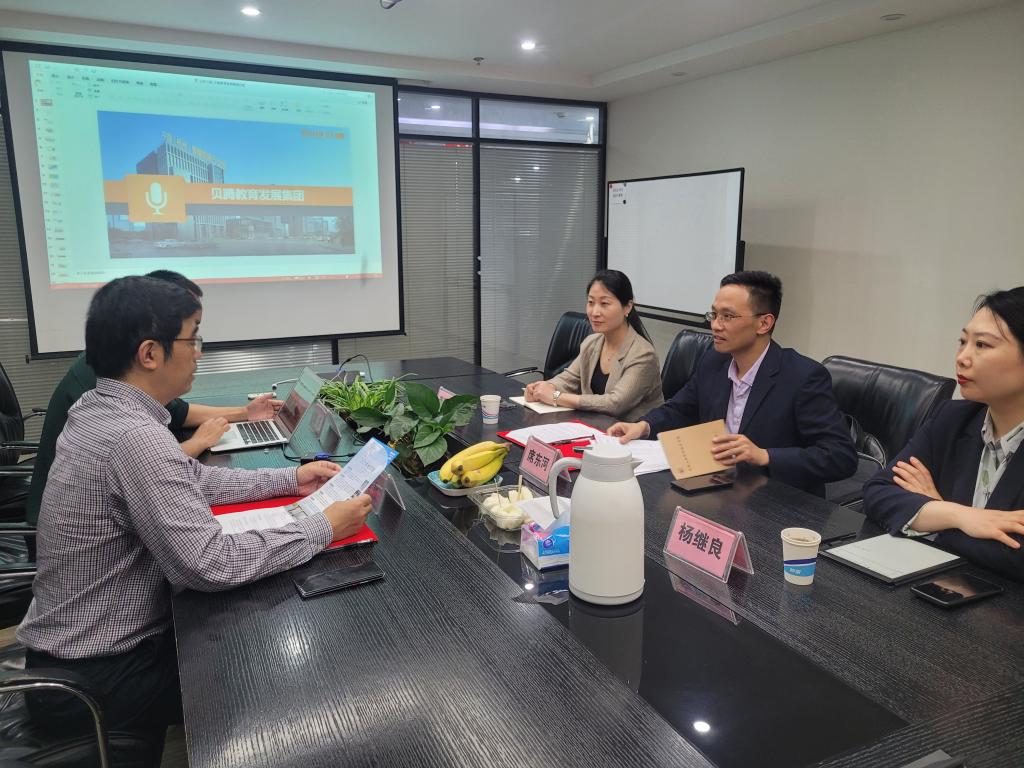 在杭州贝腾科技有限公司,与公司董事长黄林、区域经理潘立新等进行了会谈,黄林介绍了公司在商业模拟实战训练产品与课程建设等方面的概况、管理亮点和校企合作方面的经验。双方就企业人才需要和培养、就业指导、职业规划、创新创业、教学改革等进行了深入的探讨,并签订校外创新创业实践基地协议,进一步丰富合作形式,创新合作模式,实现携手发展,为下一步深入合作打下基础。