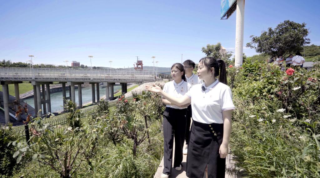在南水北调中线工程渠首,师生们近距离感受陶岔渠首枢纽工程的雄伟,大坝雄伟屹立,一汪清水奔腾向北,渠首两侧,水清、天蓝、地绿,展现了人与自然和谐的景象,见证了中国共产党立党为公、执政为民的理念。