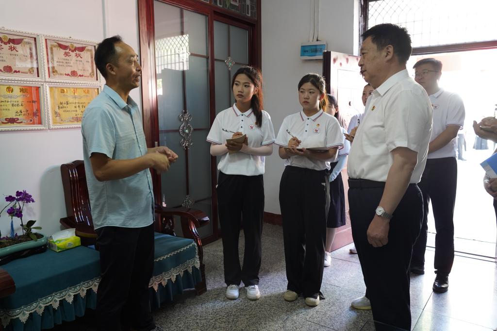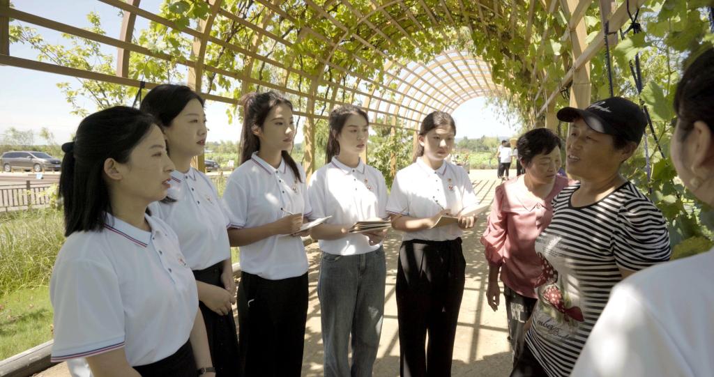 在邹庄移民新村,温道军带领师生沿着习近平总书记视察邹庄移民新村路线,感受乡村的变化,邹庄村村容整洁、产业兴旺、生态宜居、乡风文明、治理有效、生活富裕,呈现出一片和谐美丽的乡村景象。大家详细了解南水北调移民安置、发展特色产业、促进移民增收等情况,重温习近平总书记重要讲话精神,认真聆听南水北调移民迁安的感人事迹,深刻领会了“顾全大局、爱国奉献”的移民精神。