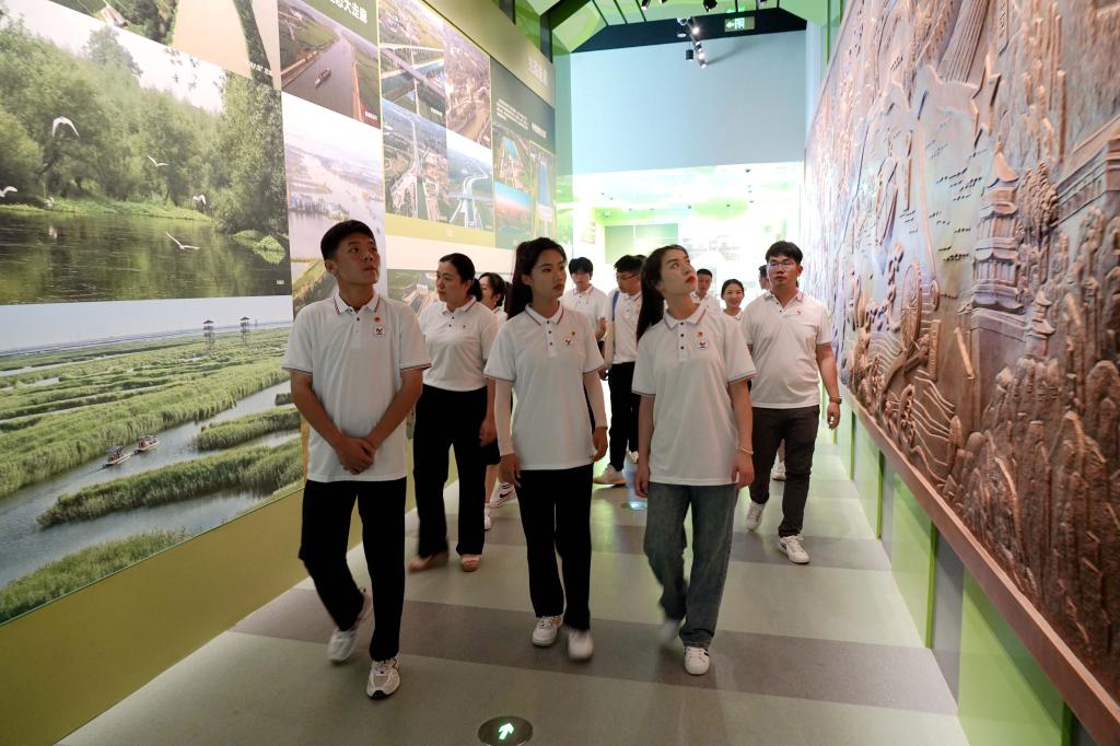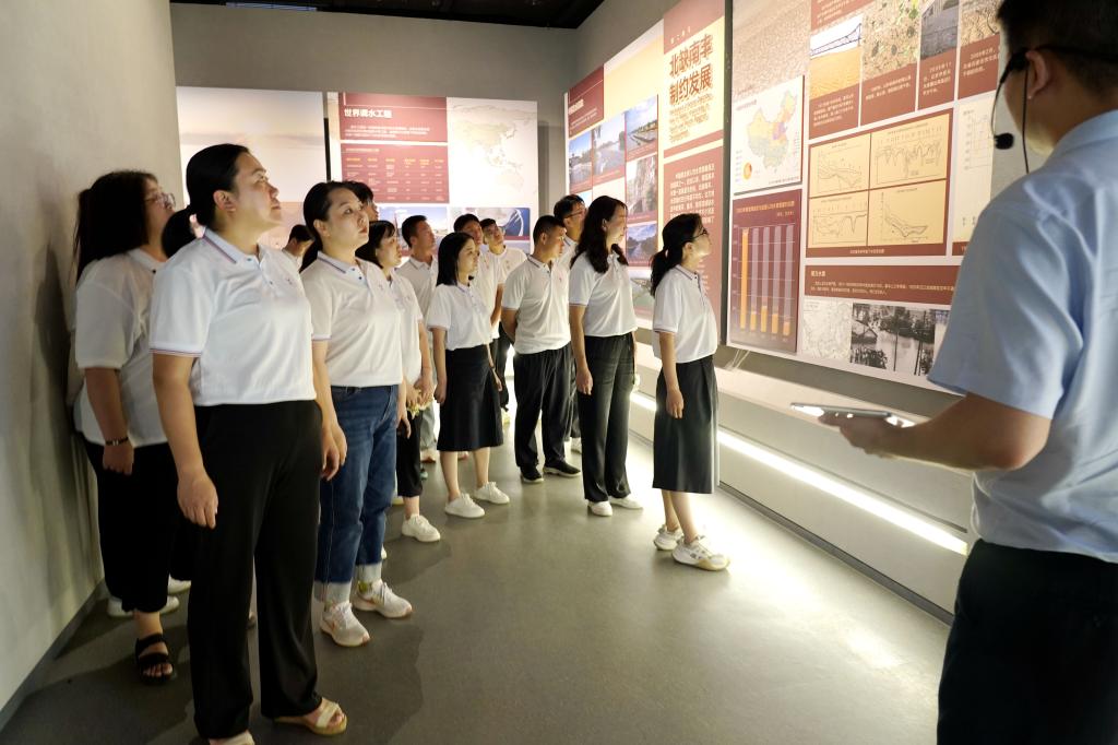 在南水北调展览馆,通过图文介绍、实物展览,一个个生动的故事,一幅幅壮阔的画面重现眼前,师生们详细了解了南水北调工程建设的艰辛历程和库区移民搬迁的光荣历史。