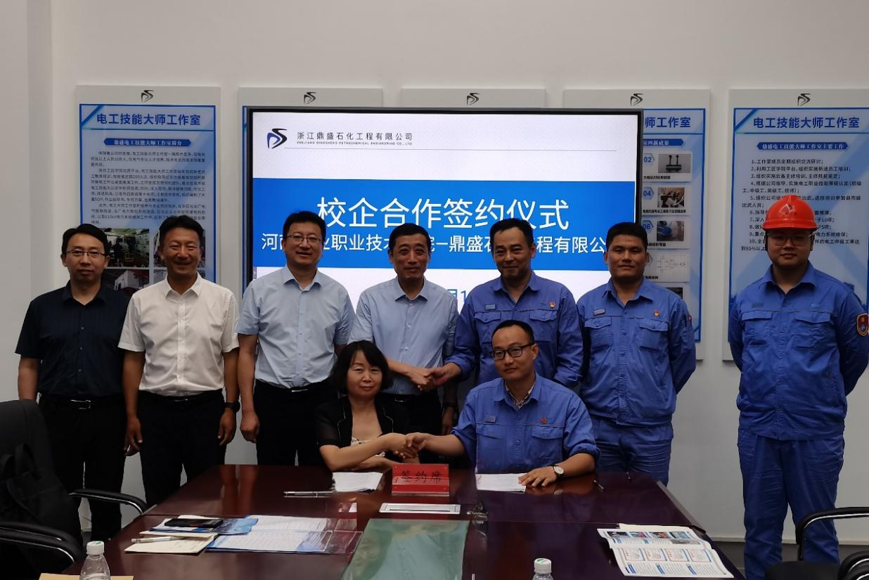 求真务实,深化合作。在浙江鼎盛石化工程有限公司,王伟一行与公司举行了校企合作签约仪式,双方就校企之间人才培养、就业实习实践、双师型教师实习基地等方面达成了合作协议。浙江鼎盛石化工程有限公司副总经理胡杰对我校已入职的学生做出了高度评价,他表示企业的人才需求与学校毕业生高度匹配,希望以此次签约为契机,在订单班、产教融合等方面继续深化合作。