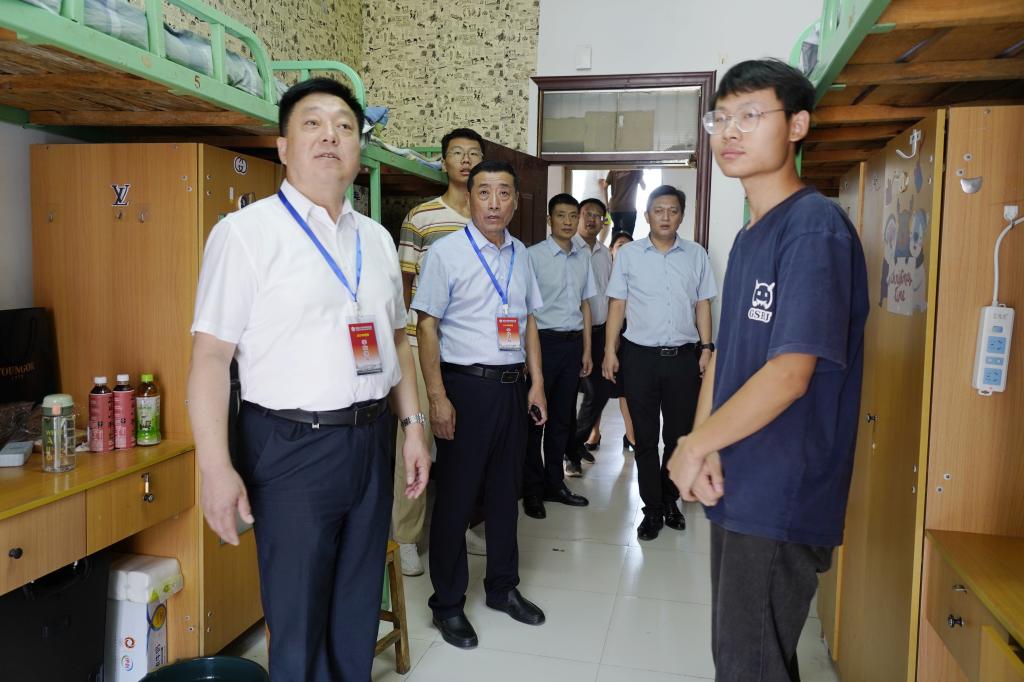 在学生10号公寓,校领导一行仔细查看了新生住宿环境,对宿舍卫生、衣柜桌椅、安全设施等进行逐一检查,并与已报到入住的学生亲切交流,详细询问同学们的家庭情况、学业情况,勉励同学们在学校安心学习,尽快转换角色,适应大学生活,为技能成才、技能报国打下坚实的基础。