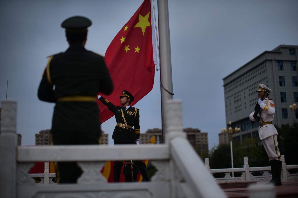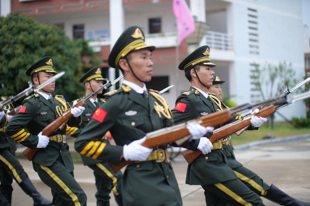 迎着晨曦,伴随一声洪亮的口号“出旗”,国旗仪仗队迈着坚定有力的步伐,整齐划一地护卫着鲜艳的国旗迈向升旗台。伴随着庄严嘹亮的国歌,旗帜冉冉升起,迎风飘扬。