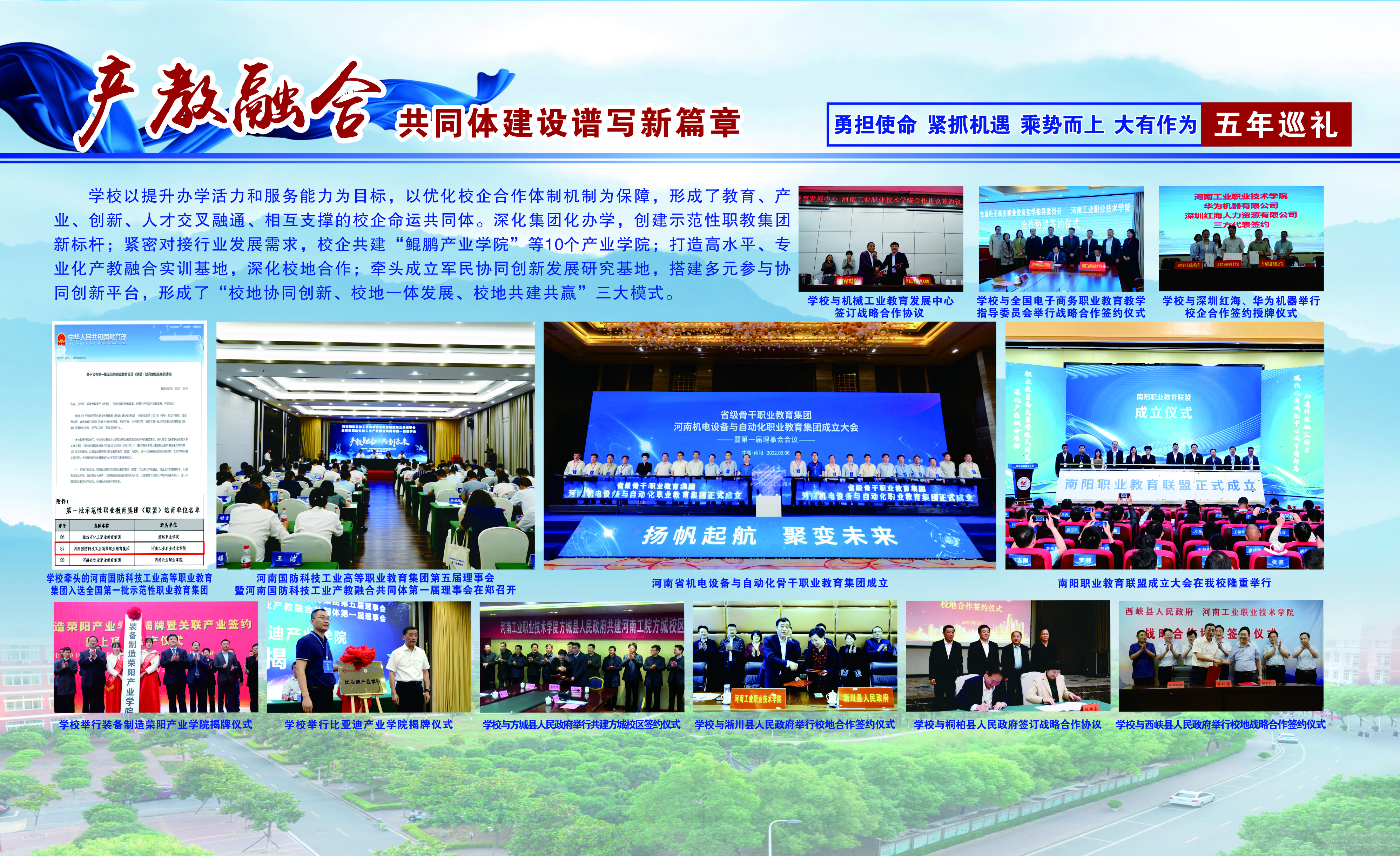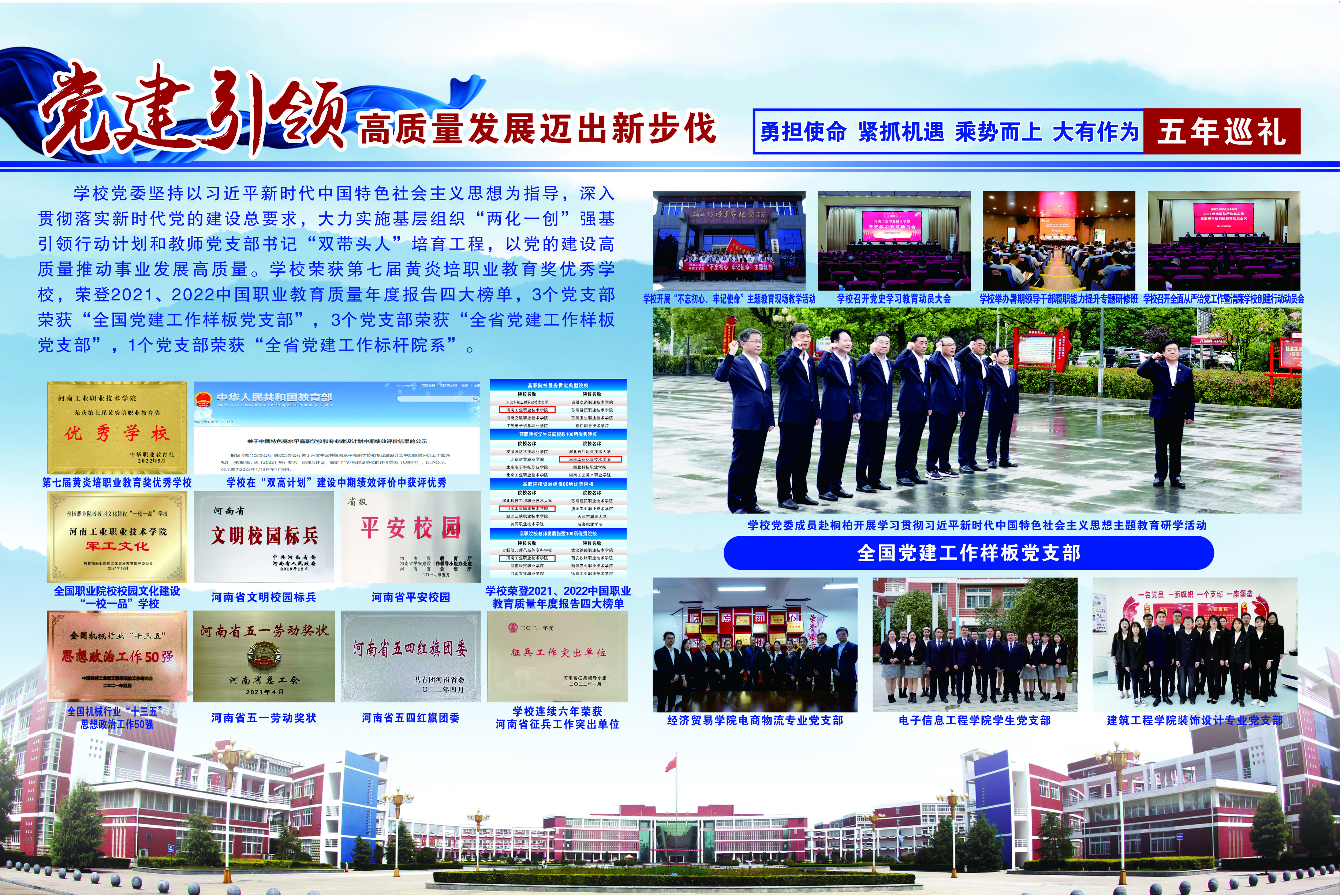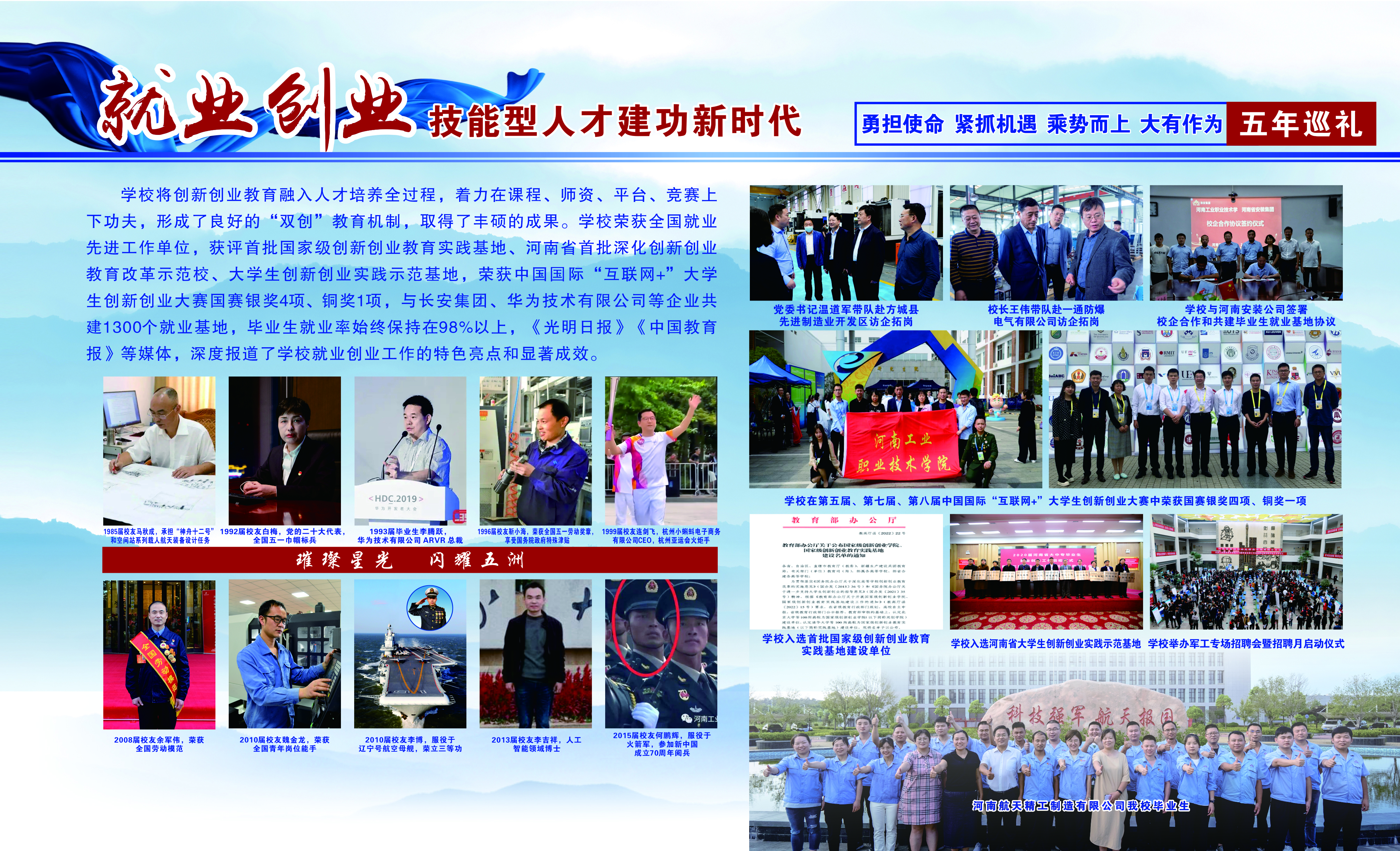 编者按:中国共产党河南工业职业技术学院第三次代表大会召开在即,学校站在新的历史发展节点。作为中国特色高水平高职学校和专业建设计划建设单位,五年来,学校深入贯彻习近平总书记关于职业教育的重要指示精神,坚持党的全面领导,落实立德树人根本任务,在服务国家战略中答好新的时代答卷,在职业教育改革发展的大潮中勇担使命、紧抓机遇、乘势而上、大有作为,实现高质量发展。近日,党委宣传部筹备制作“五年巡礼”办学成果展,精选图文材料,全方位展示学校第二次党代会以来,砥砺前行、跨越发展的丰硕成果,激励全校师生以更加昂扬的姿态走好新的赶考之路。(供稿/党委宣传部 图文/杨爽 杨纪争 单位审核/赵国峰 编审/杨洋)