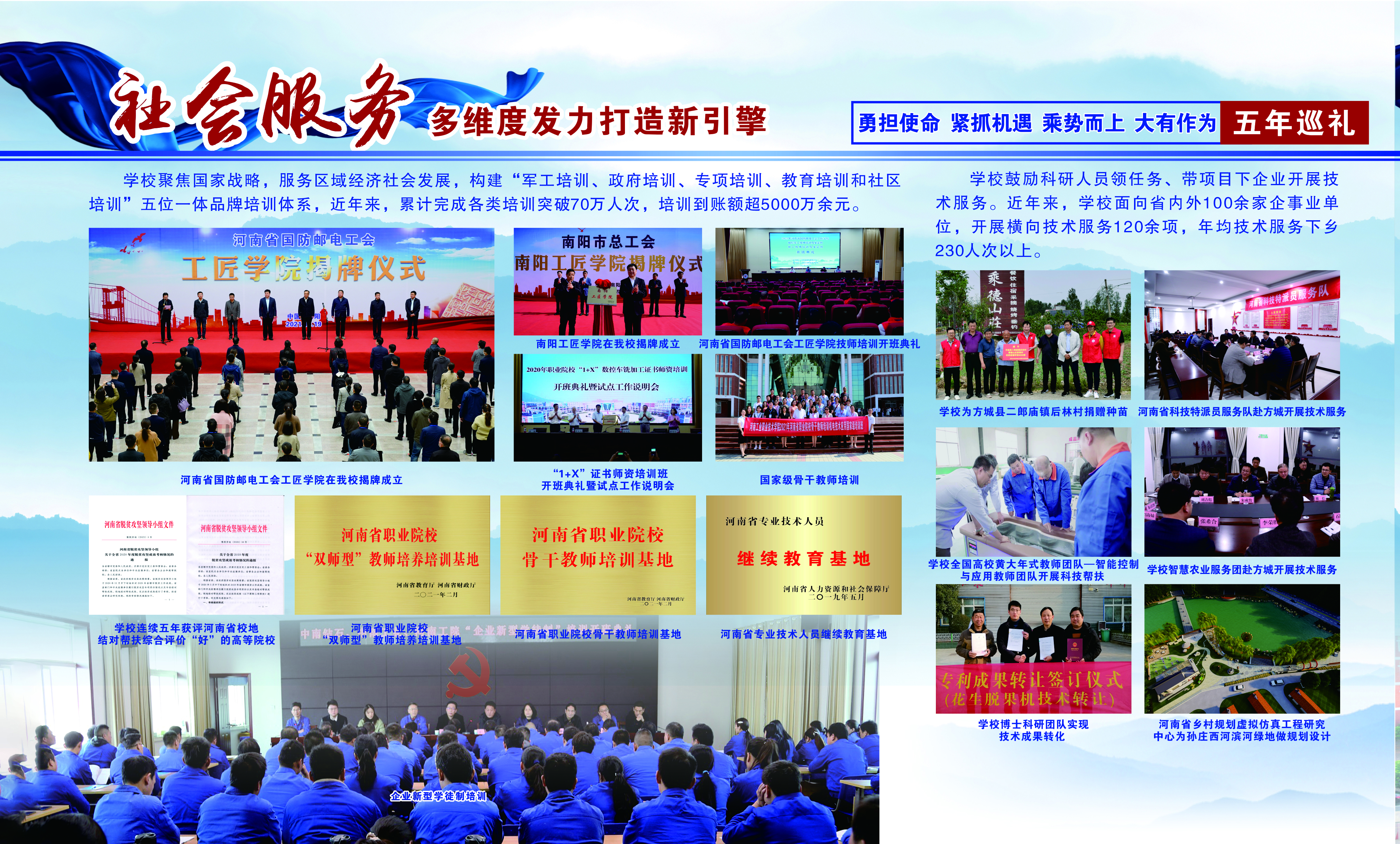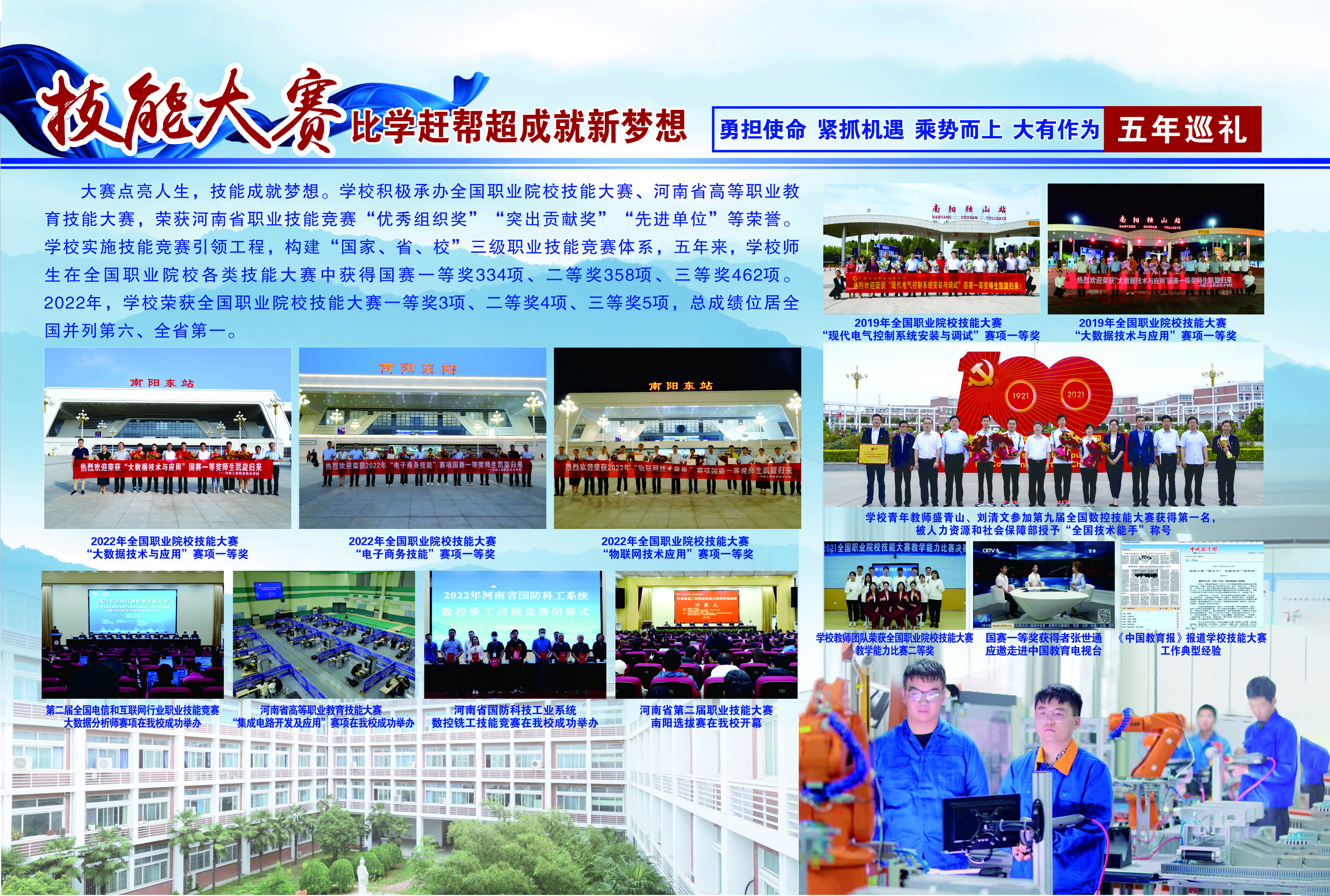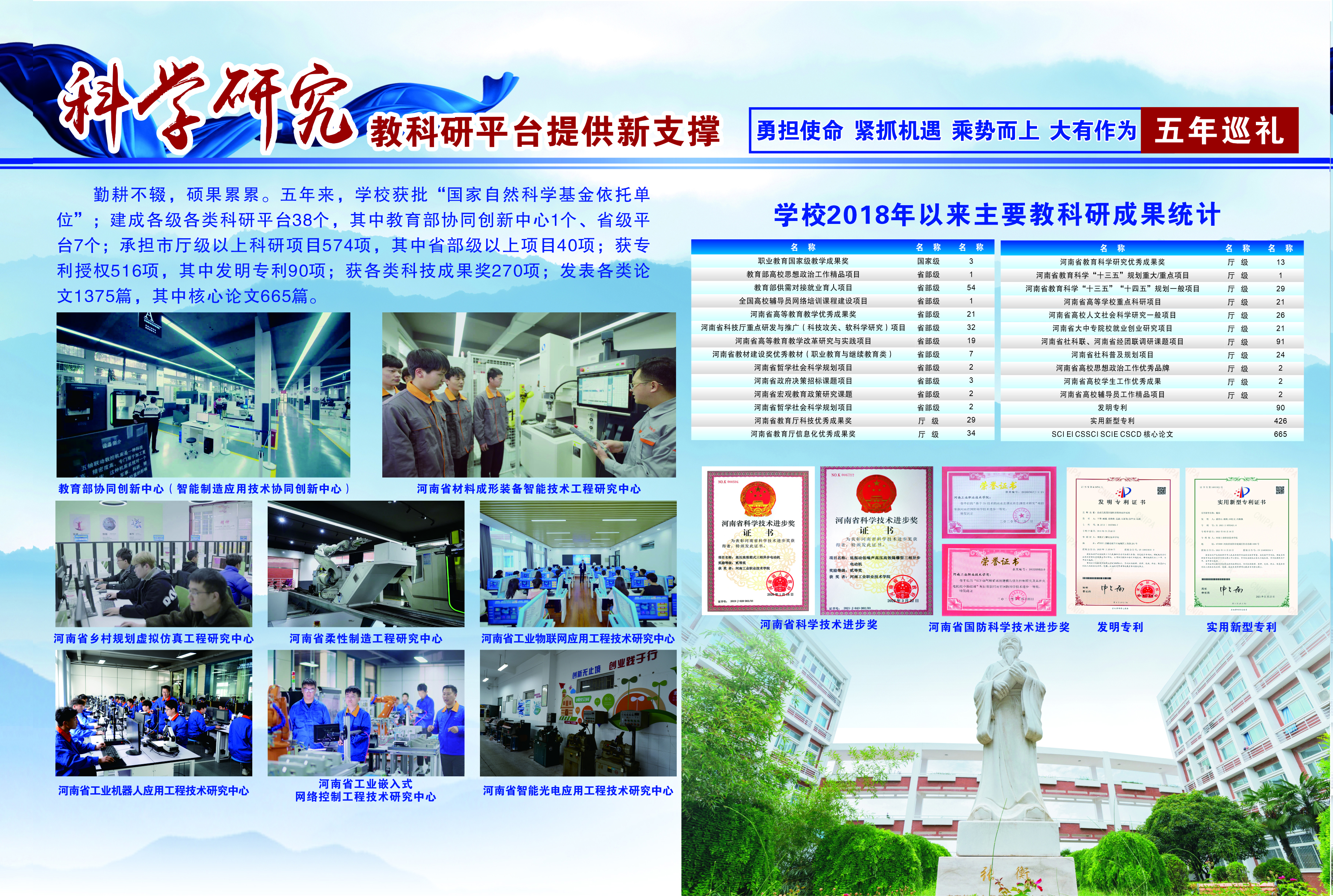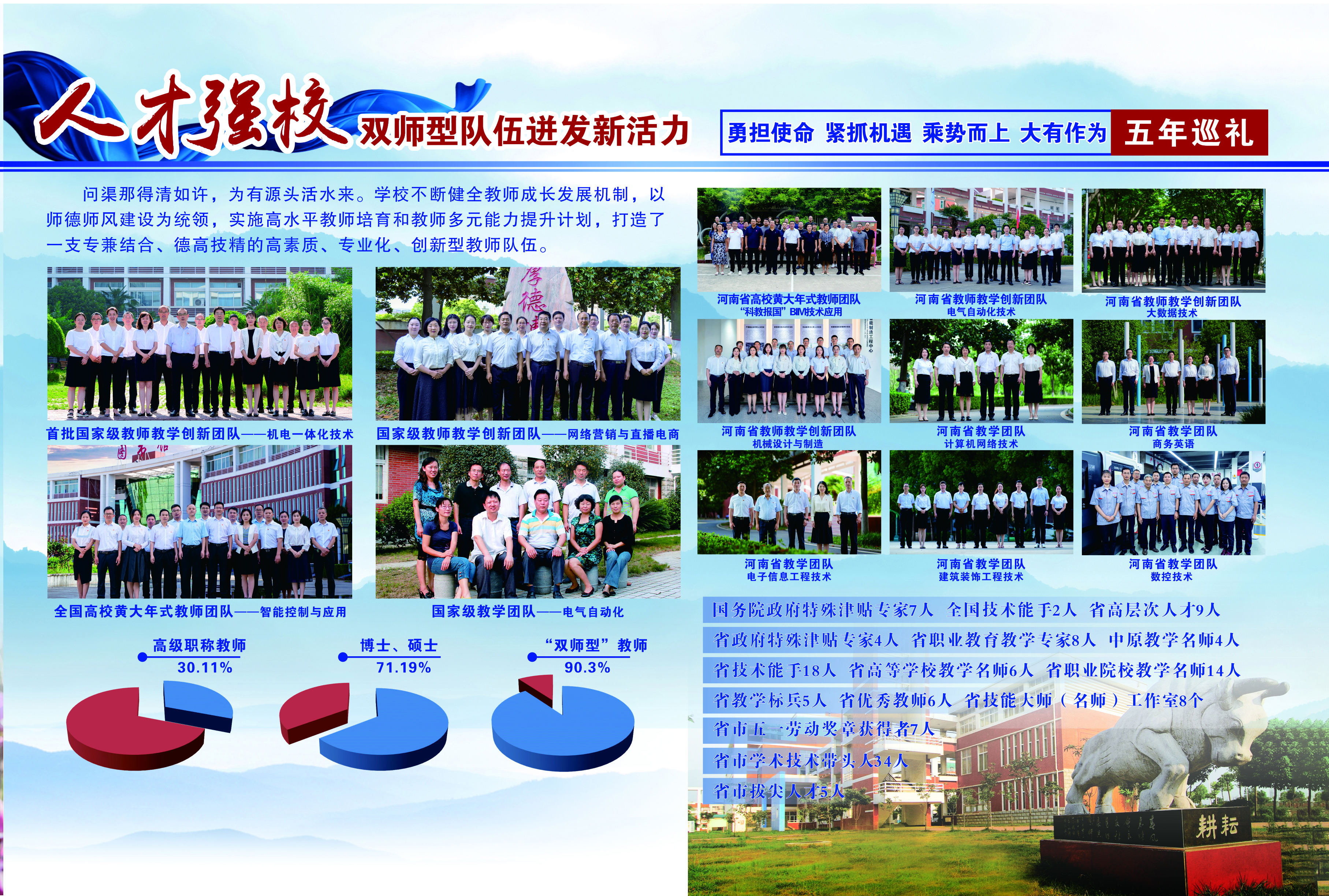 编者按:中国共产党河南工业职业技术学院第三次代表大会召开在即,学校站在新的历史发展节点。作为中国特色高水平高职学校和专业建设计划建设单位,五年来,学校深入贯彻习近平总书记关于职业教育的重要指示精神,坚持党的全面领导,落实立德树人根本任务,在服务国家战略中答好新的时代答卷,在职业教育改革发展的大潮中勇担使命、紧抓机遇、乘势而上、大有作为,实现高质量发展。近日,党委宣传部筹备制作“五年巡礼”办学成果展,精选图文材料,全方位展示学校第二次党代会以来,砥砺前行、跨越发展的丰硕成果,激励全校师生以更加昂扬的姿态走好新的赶考之路。(供稿/党委宣传部 图文/杨爽 杨纪争 单位审核/赵国峰 编审/杨洋)