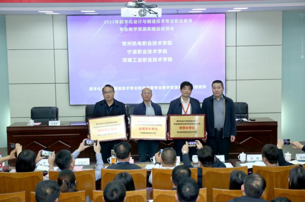 机械工业发展中心主任助理王志强,宁波职业技术学院党委副书记、校长吴翔阳,河南工业职业技术学院党委副书记杜建根等共同启动“数字化设计与制造技术专业职业教育专业教学资源库建设联盟”,并对理事长单位、副理事长单位及成员单位进行授牌。