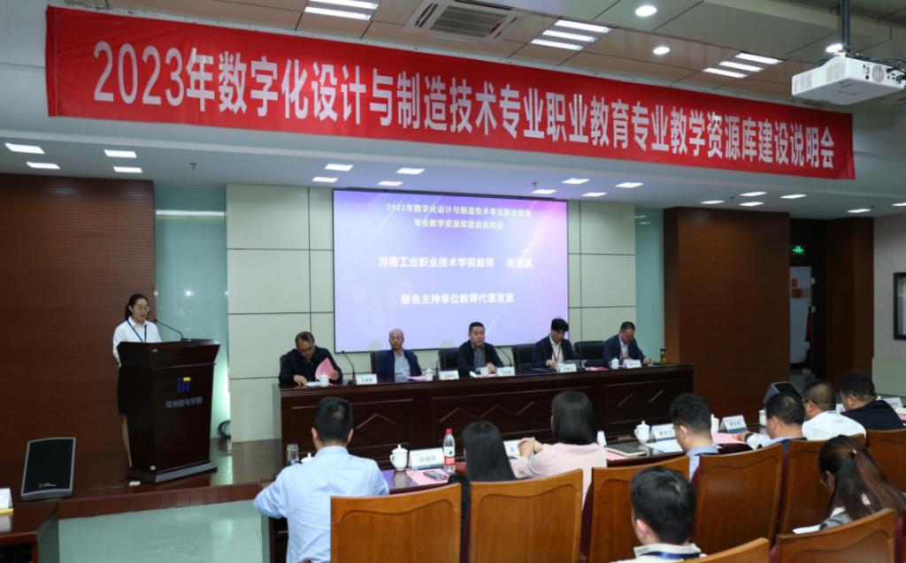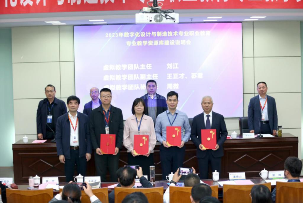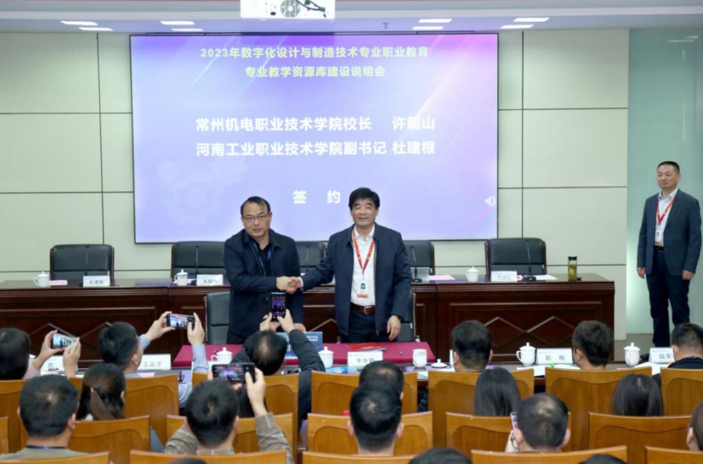 杜建根代表河南工业职业技术学院与常州机电职业技术学院签订专业教学资源库建设任务书,宣读了“数字化设计与制造技术专业虚拟教学团队”成立文件,并为参建院校和企业颁发了聘书。苏君作为专业资源库的联合主持人,被聘任虚拟教学团队副主任。