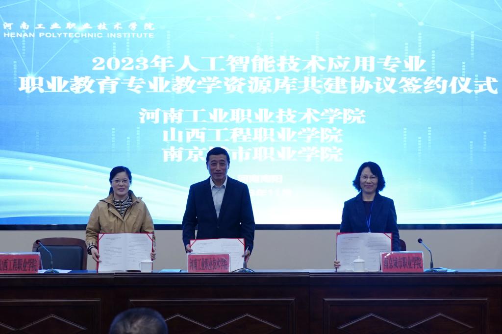 王伟分别与山西工程职业学院、南京城市职业学院签订专业教学资源库建设协议,并为参建院校课程负责人、智慧教研室主任和副主任颁发聘书。