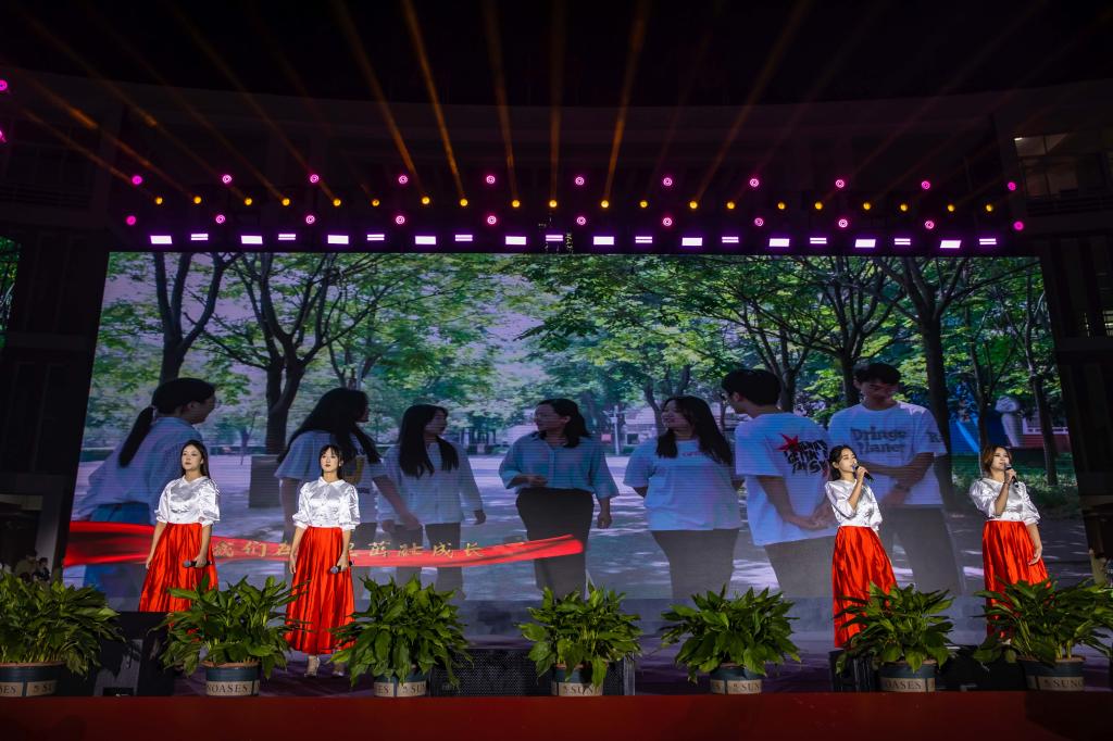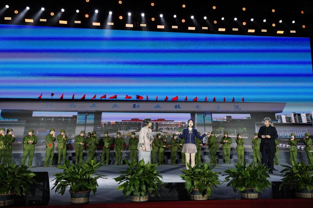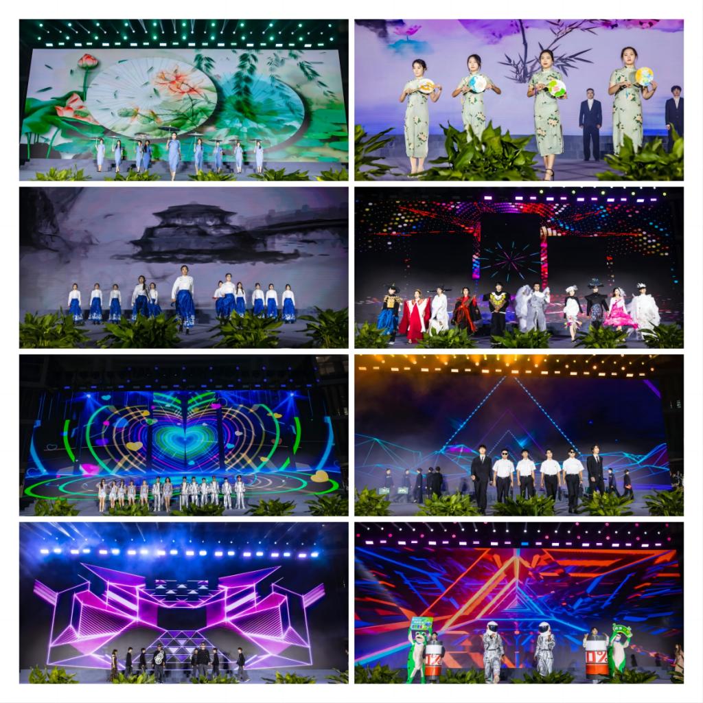 第三篇章《百舸争流》,由各个学院青年学生带来的创意走秀,生动展现了青春的朝气蓬勃;小品《你是这样的人》展现了学校取得的成就是一代又一代人前赴后继,接续奋斗换来的,向全体老领导老教师们致敬;器乐串烧《盛世国乐》,用中西乐器跨界演绎了四大名著电视剧里的经典旋律,让观众沉浸其中感受音乐的魅力;快板舞《不负韶华谱新篇》以朗朗上口的快板词、动感的节奏、欢快的舞步,生动讲述了学校五十年光辉历程。