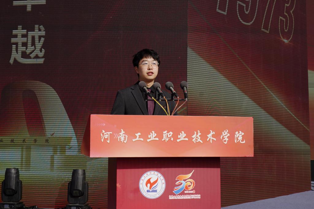 学校学生代表21级电气自动化技术专业吴钇宏在发言中表达了对学校培养的感恩之情,表示将继续努力学习专业技能知识,立志做有理想、敢担当、能吃苦、肯奋斗的新时代青年。
