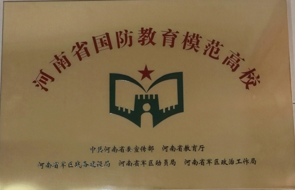 “河南省国防教育模范高校”创建活动由河南省委宣传部、河南省教育厅、河南省军区战备建设局、动员局、政治工作局于2020年起部署开展,按照“自愿申报、逐年测评、审议确定、动态管理”的程序,综合各高校2020-2022年三年考评情况,择优命名为“河南省国防教育模范高校”。近年来,学校党委、行政高度重视国防教育工作,认真学习贯彻习近平强军思想,引导广大师生弘扬拥军爱军优良传统,积极服务国防建设和军民融合发展战略,找准目标定位,勇于担当作为,扎实做好国防教育、征兵和学生军训工作,推动国防动员和后备力量建设不断取得新的更大成效。