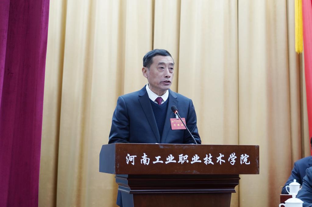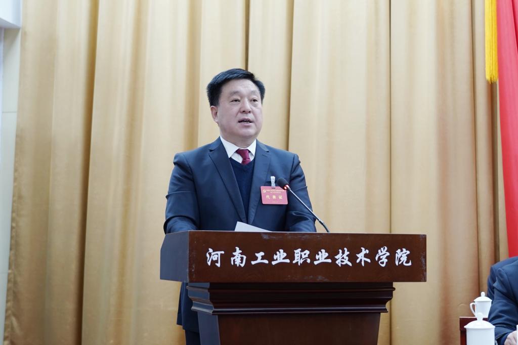温道军同志代表中国共产党河南工业职业技术学院第二届委员会向大会作工作报告