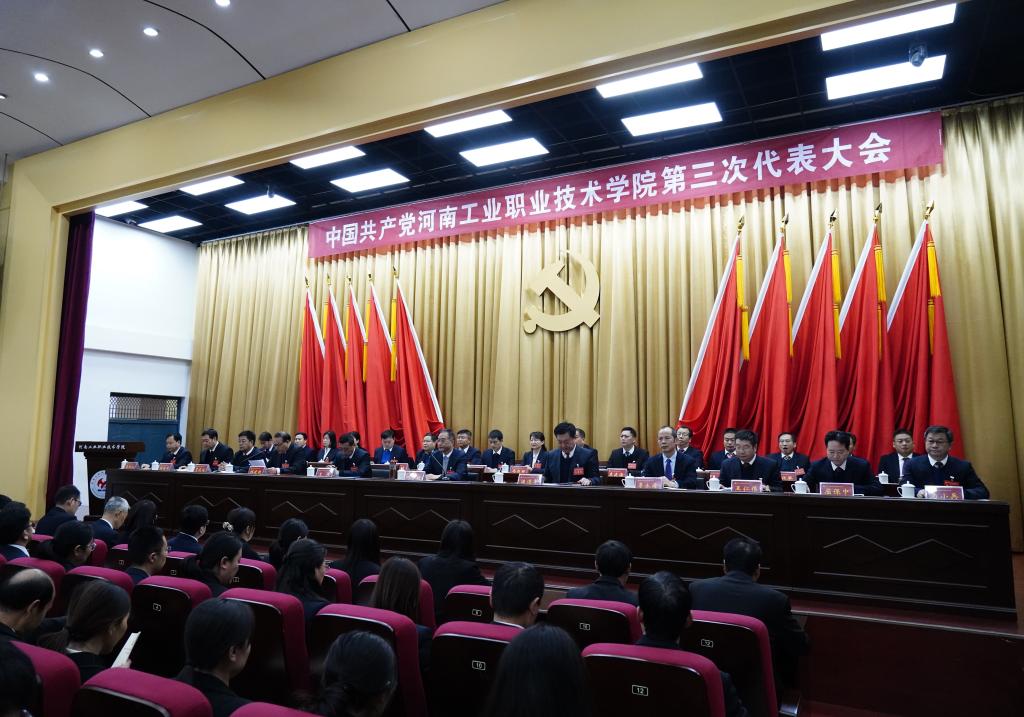 中国共产党河南工业职业技术学院第三次代表大会是在全党上下学习贯彻习近平新时代中国特色社会主义思想和党的二十大精神,加快建设教育强国、以中国式现代化实现中华民族伟大复兴的重要时期,是在我校建校50周年、全力推进“双高计划”建设、积极申办本科层次职业教育的关键时刻,召开的一次十分重要的大会。