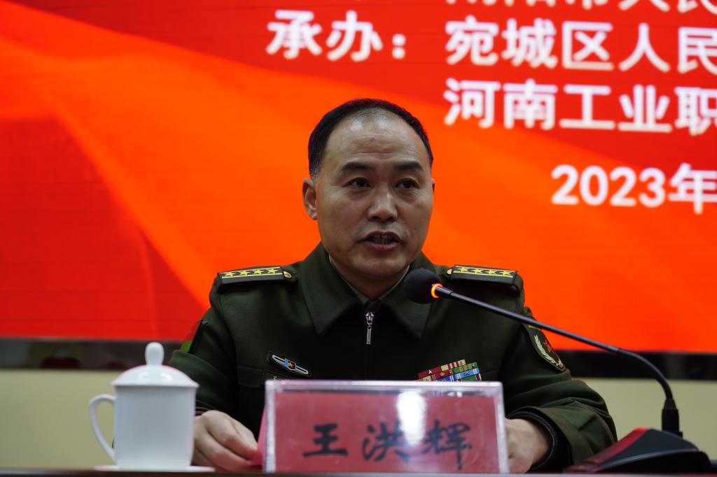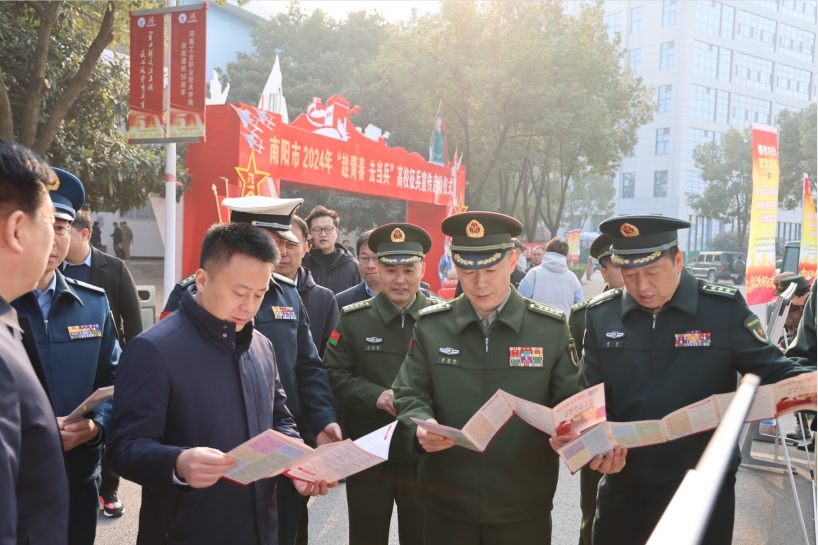12月26日上午,南阳市2024年“趁青春、当兵去”高校征兵宣传启动仪式在我校孔明路校区举办。市军分区大校政委鲁建辉,副市长、市征兵工作领导小组组长刘江,学校党委书记温道军出席启动仪式。各县市区征兵办领导、驻宛各高校分管征兵工作领导、武装部长、师生代表等400余人参加启动仪式。启动仪式由市军分区副司令员王洪辉主持。