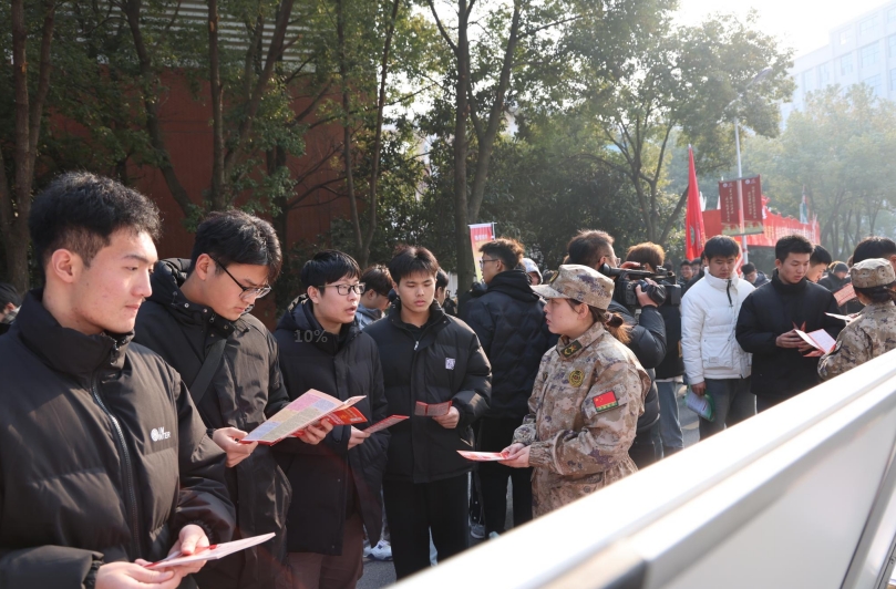 仪式结束后,与会领导与大学生代表一起参加了现场政策宣传活动,各县市区人武部组织开展了现场咨询活动,为广大学生发放征兵政策宣传资料,为有入伍意愿的大学生现场解读征兵政策。