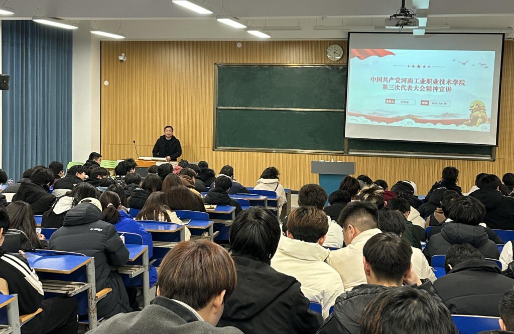 为深入学习宣传贯彻学校第三次党代会精神,把广大师生思想和行动统一到党代会精神上来,把智慧和力量凝聚到党代会确定的各项目标任务上来,按照学校《学习宣传贯彻学校第三次党代会精神工作方案》要求,党委宣传部牵头组建宣讲团,于12月上旬至今在全校范围内广泛开展第三次党代会精神宣讲活动。