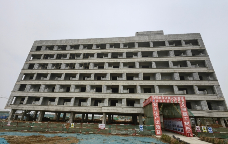 屈保中在一期项目施工现场进行了实地考察,对项目建设现状做了充分研判。目前,北食堂、教师单身公寓、A1和A2学生宿舍楼,B栋和C栋实训楼主体结构已封顶,人防地库主体结构施工完成;A栋实训楼即将封顶,校级办公楼三层结构施工完成,图书馆、汽车实训楼独立施工基础完成,一期建设工程计划在6月底前完成验收交付。现场调研结束后,在项目部会议室召开了工程建设推进会,各项目负责人参加会议,会议由贾贵海主持。