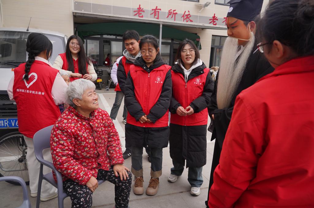 志愿者们还为老人们带来了唱腔气势滂沱的京剧《鱼肠剑》选段和质朴婉转的越调《收姜维》选段,赢得了老人们的阵阵掌声。有一位奶奶激动地说:“今天像过节一样开心,见到你们就像见到我自己的孙子孙女一样。”